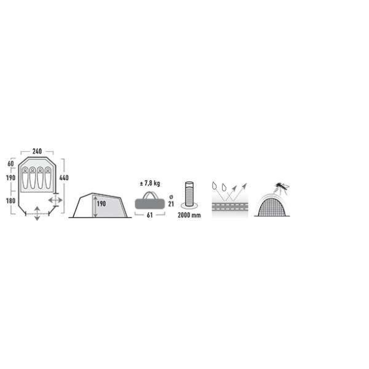 - Габариты внешней палатки (ДхШхВ), мм: 4300x2400x2000