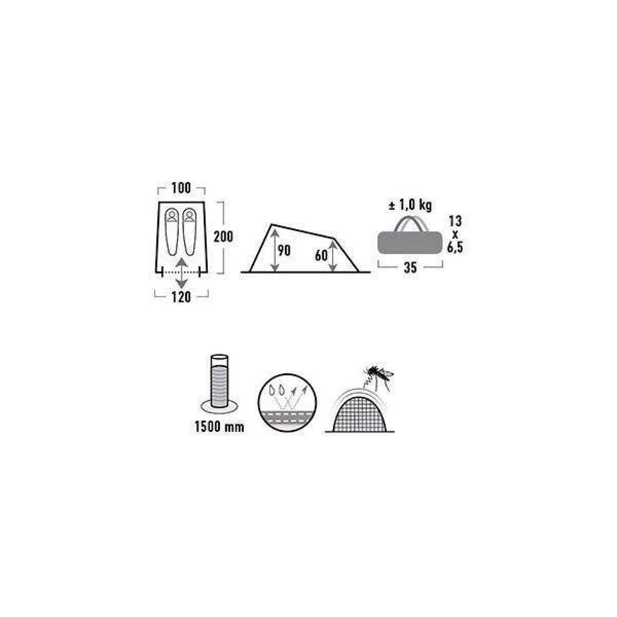 - Габариты внешней палатки (ДхШхВ), мм: 2000x1200x900
