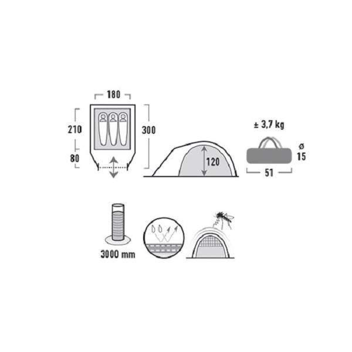 - Габариты внешней палатки (ДхШхВ), мм: 3000x1800x1200