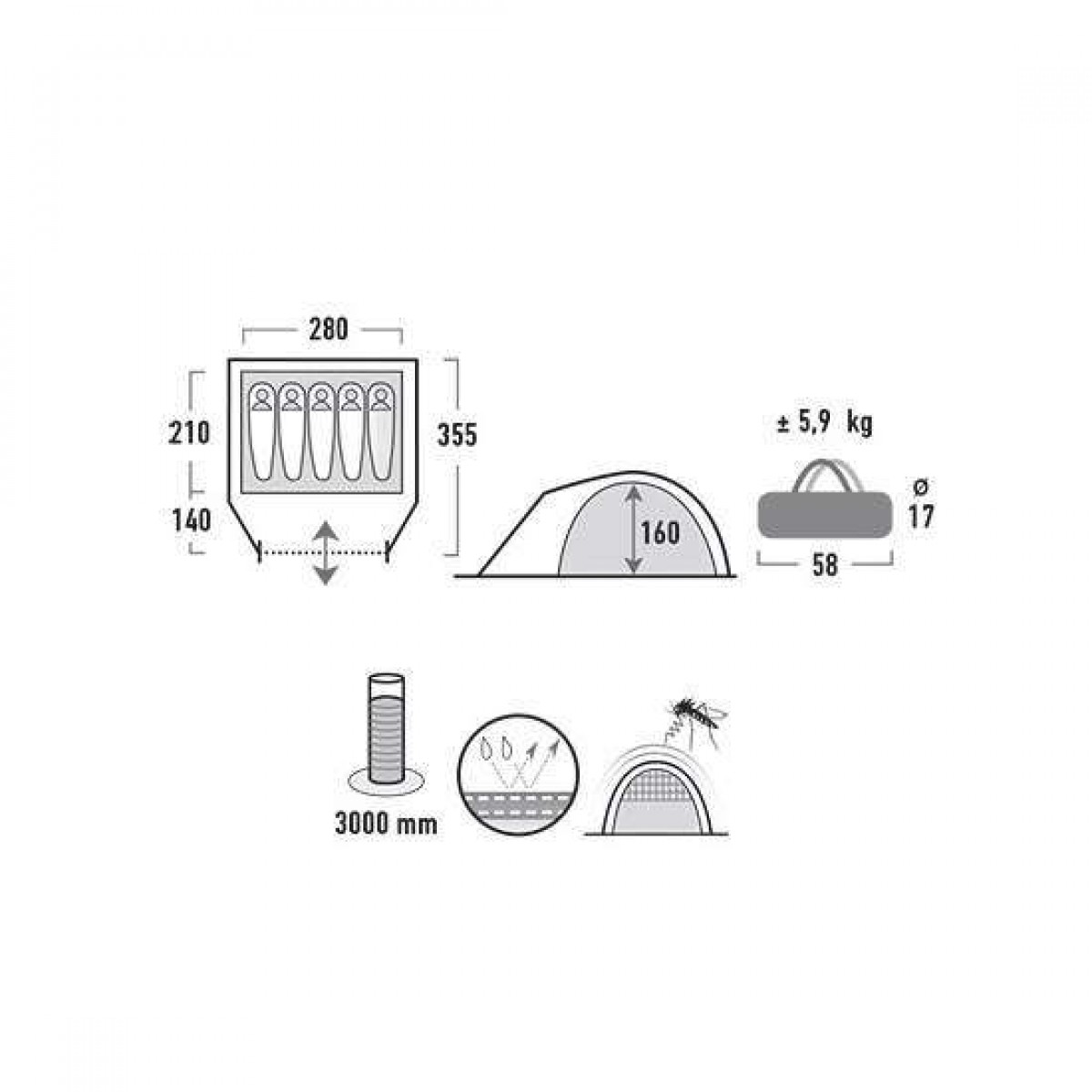 - Вес палатки: 5.9 кг