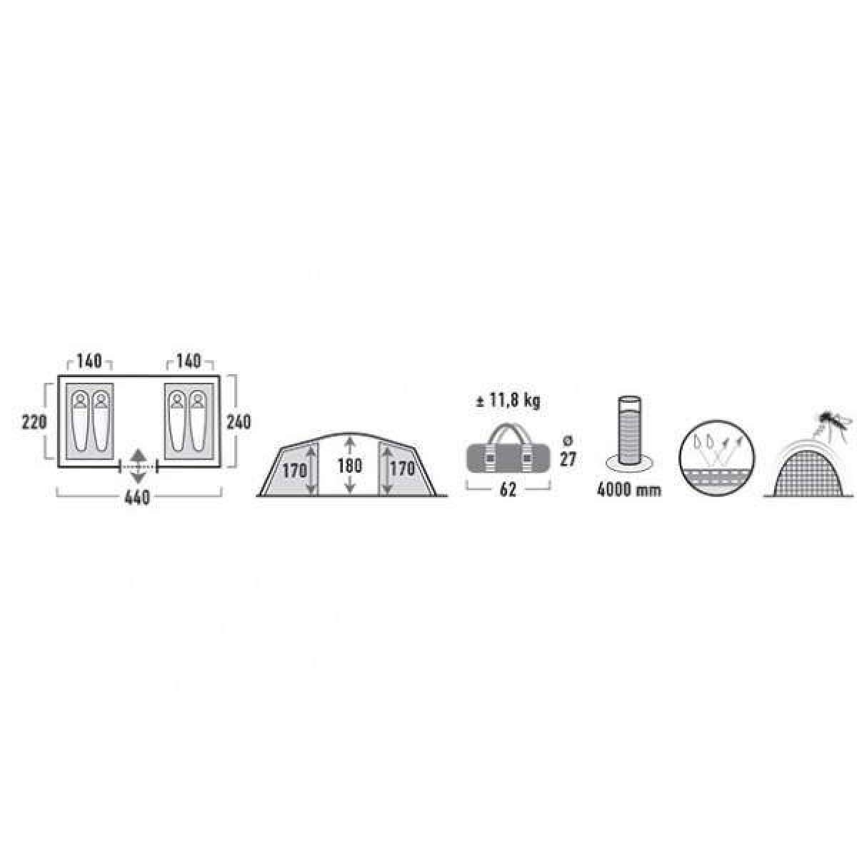 - Габариты внешней палатки (ДхШхВ), мм: 4400 x 2400 x 1800