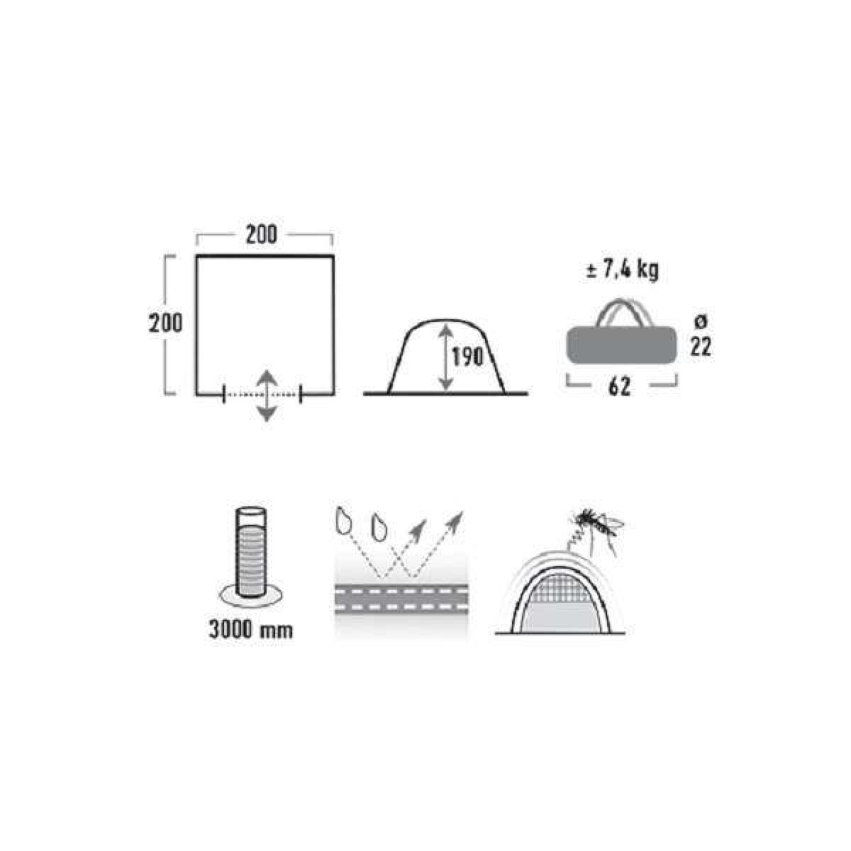 - Габариты внешней палатки (ДхШхВ), мм: 2000 x 2000 x 1900