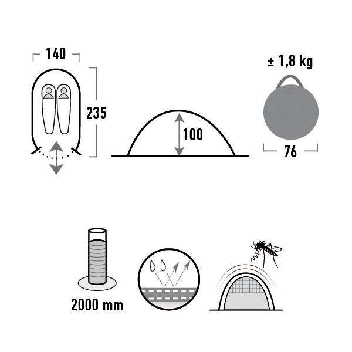 - Габариты внешней палатки (ДхШхВ), мм: 2350x1400x1000
