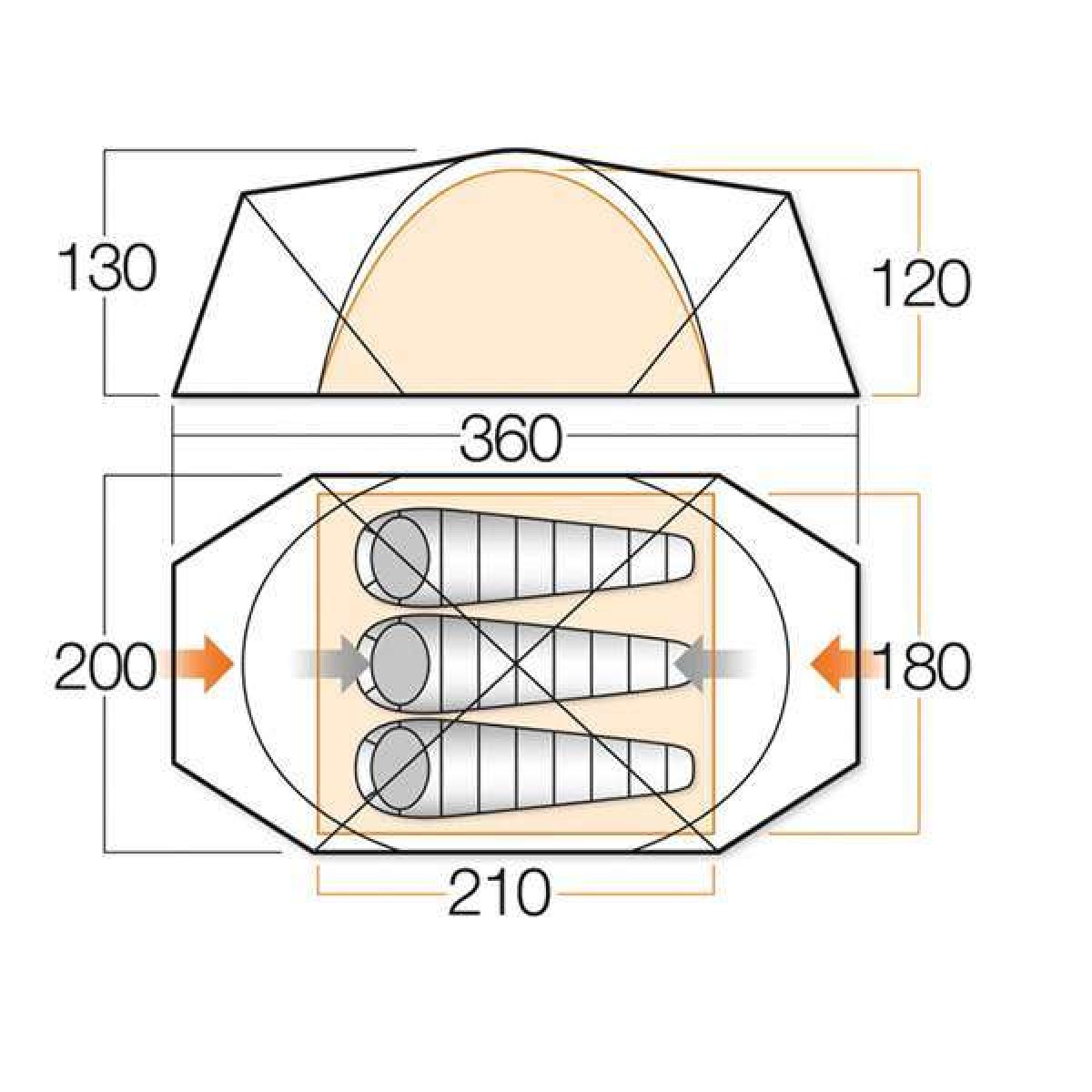 - Внешняя палатка (ДхШхВ), мм: 3600 х 2000 х 1300