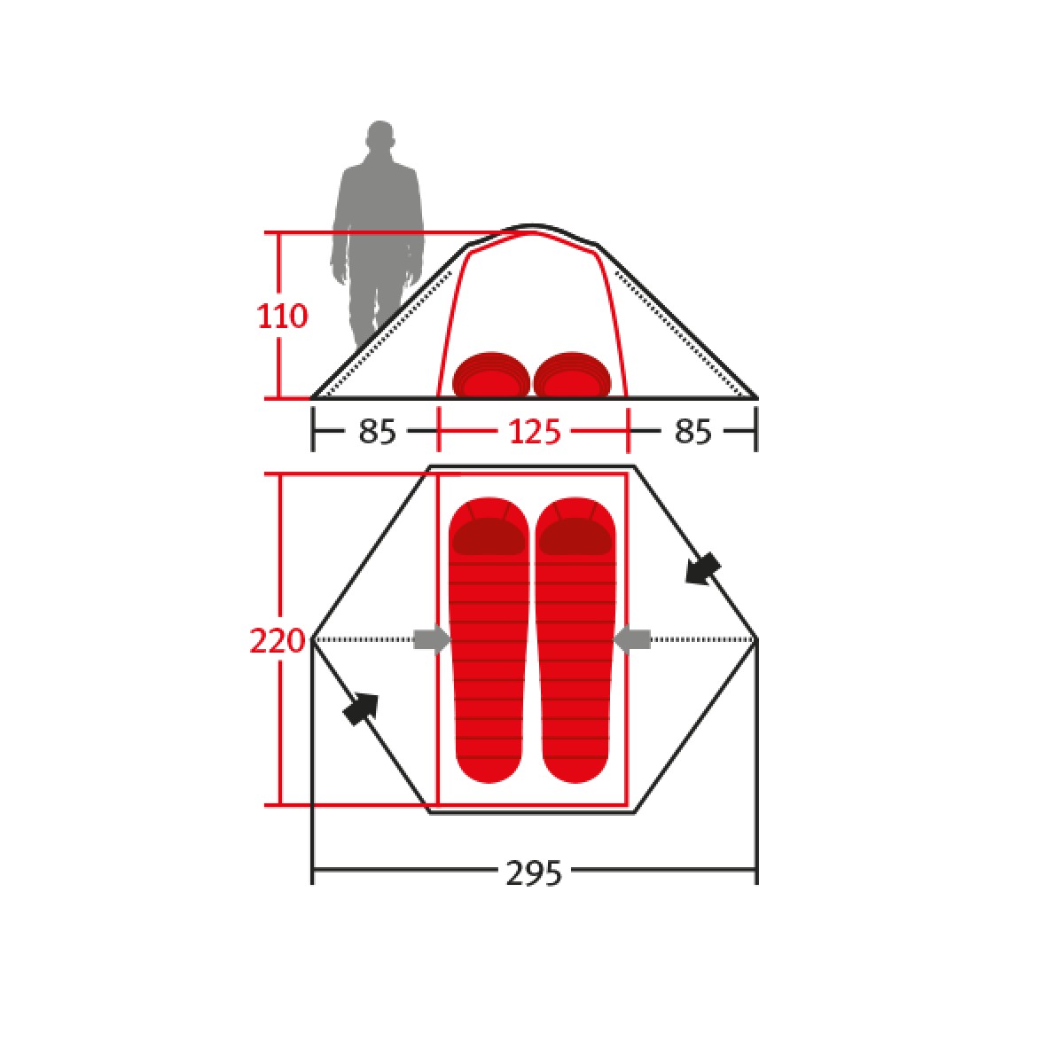 - Внутренняя палатка (ДхШхВ), мм: 2200 х 1250 х 1100