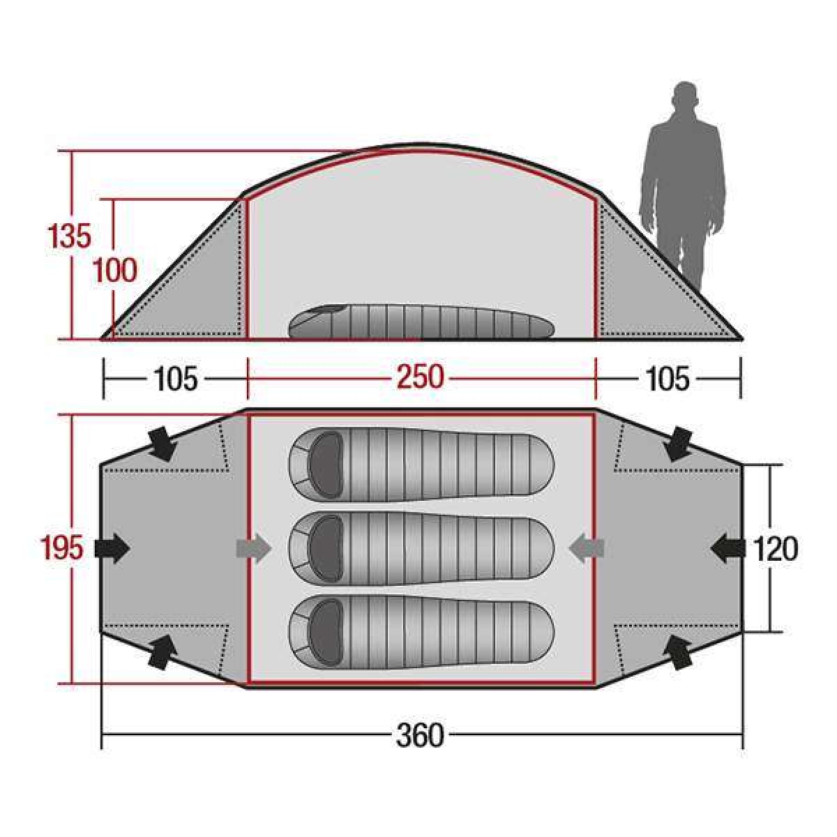 - Внешняя палатка (ДхШхВ), мм: 3600 х 1 950 х 1350