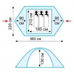 Дополнительная консольная дуга увеличивает площадь и внутренний объем тамбура, повышает ветроустойчивость и ветрообтекаемость палатки. Назанчение: пеший и горный туризм, рыбалка, отдых на природе.