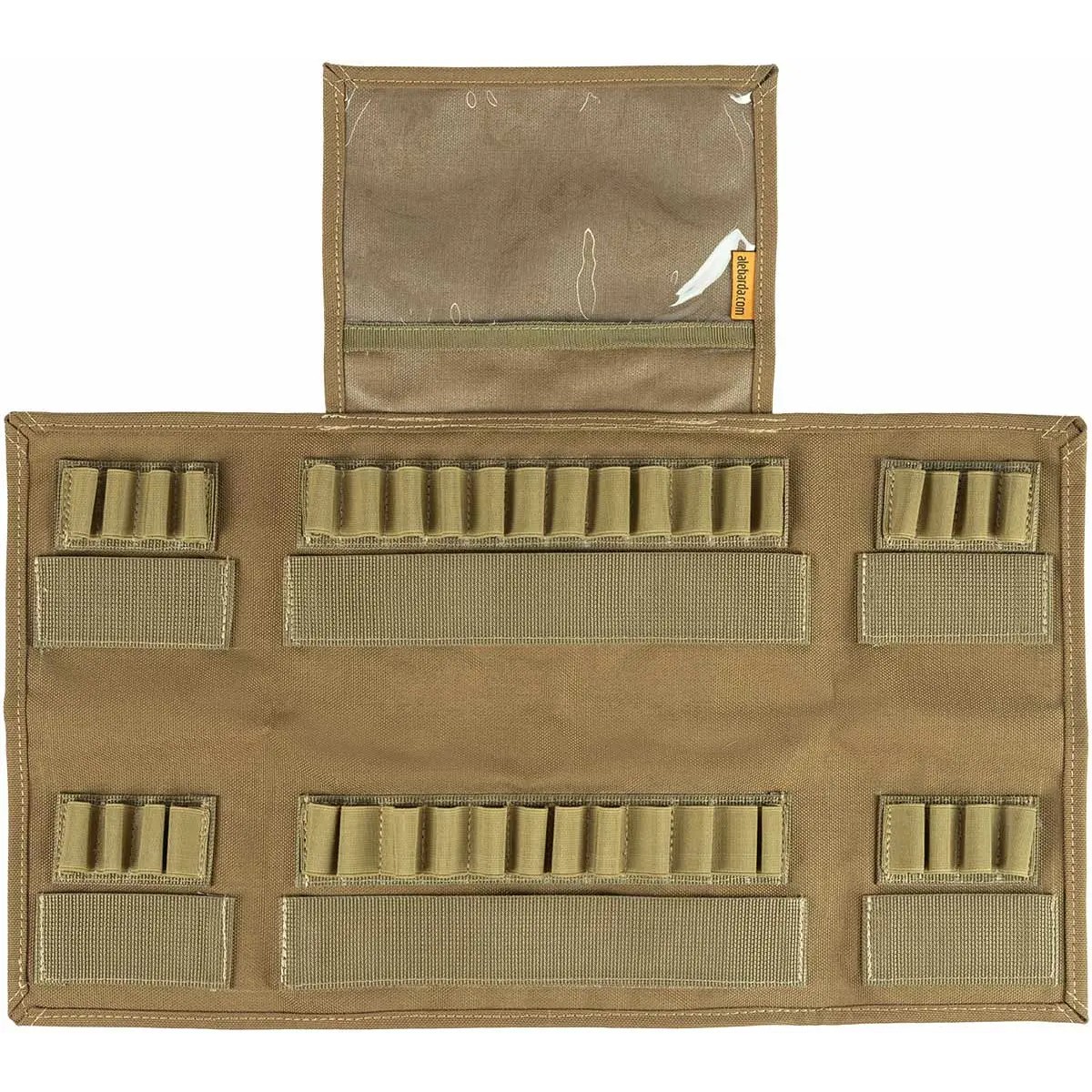 Патронташ форм-фактора "книжка" на 40 патронов кал. 338. Крышка на магнитах. Пошит из кордуры. Легко размещается в кармане большинства видов одежды для охотников.