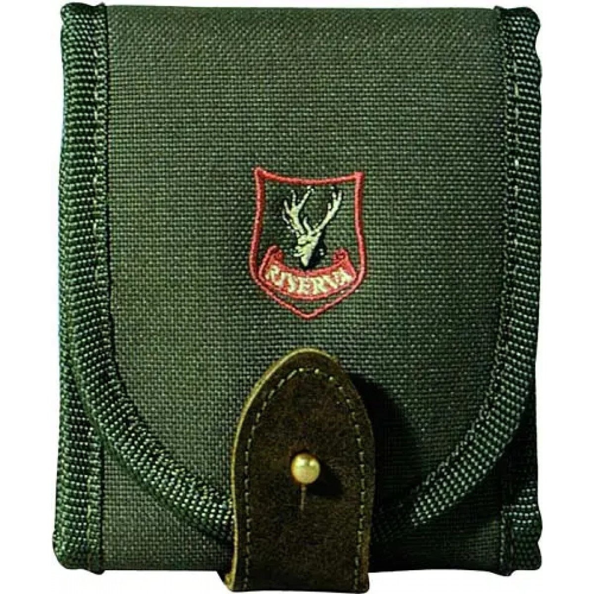Патронташ Riserva R1364 пошит из прочной кордуры зеленого цвета. Есть петли для крепления на пояс. На клапане вышит логотип компании. Патронташ рассчитан на 7 патронов 30-х калибров.