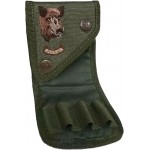 Небольшой, аккуратный патронташ на 7 ячеек под нарезные патроны. На фронтальном клапане вышивка в форме головы животного - косули, оленя, кабана - в зависимости от модели.