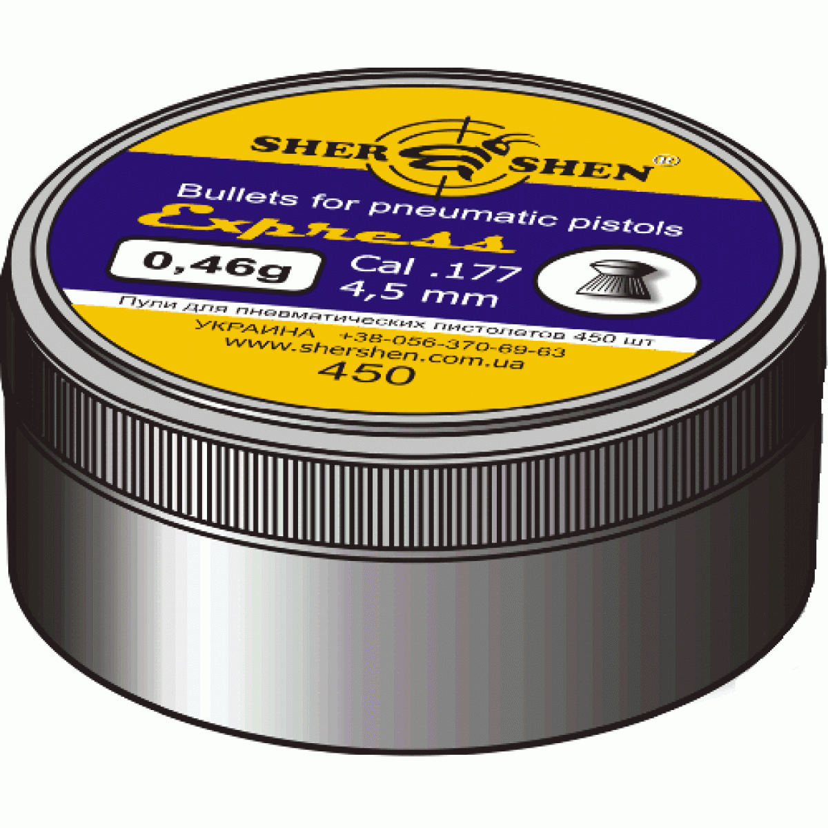 Пуля “Exspress” выпущена специально для стрельбы из пистолетов, т.к. пистолеты обладают сравнительно низкой мощностью, то для них оптимальной является эта облегченная пуля. Пуля классической формы «Диаболо» с плоско-выпуклой головной частью, вес 0,46 грамма. Пуля универсальная, предназначена для спортивной и развлекательной стрельбы, из нарезных пистолетов по различным мишеням. Обладает высокой кучностью. Пуля может использоваться в винтовках с низкой дульной энергией.