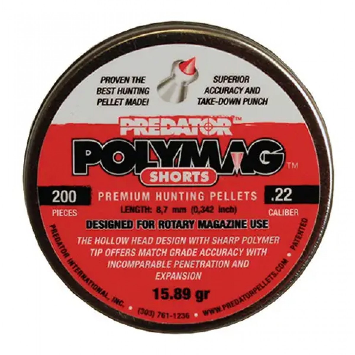 Тяжелые охотничьи пули JSB Predator Polymag Shorts с уникальной конструкцией, разработаны специально для охоты. В полую головку свинцовой пульки установлена остроконечная полимерная вставка. Благодаря такой конструкции, пули имеют лучшую точность, более глубокую проникающую силу и более высокие скорости. Пули JSB Predator Polymag Shorts предназначены для охоты на садовых вредителей.
