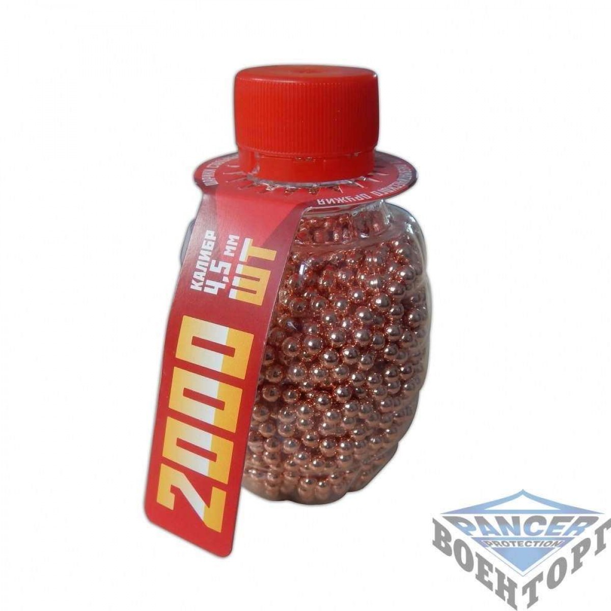 Характеристики: - Тип боеприпаса: шарики ВВ - Калибр, мм: 4,5 - Материал: сталь, покрытая медью - Количество, шт: 500