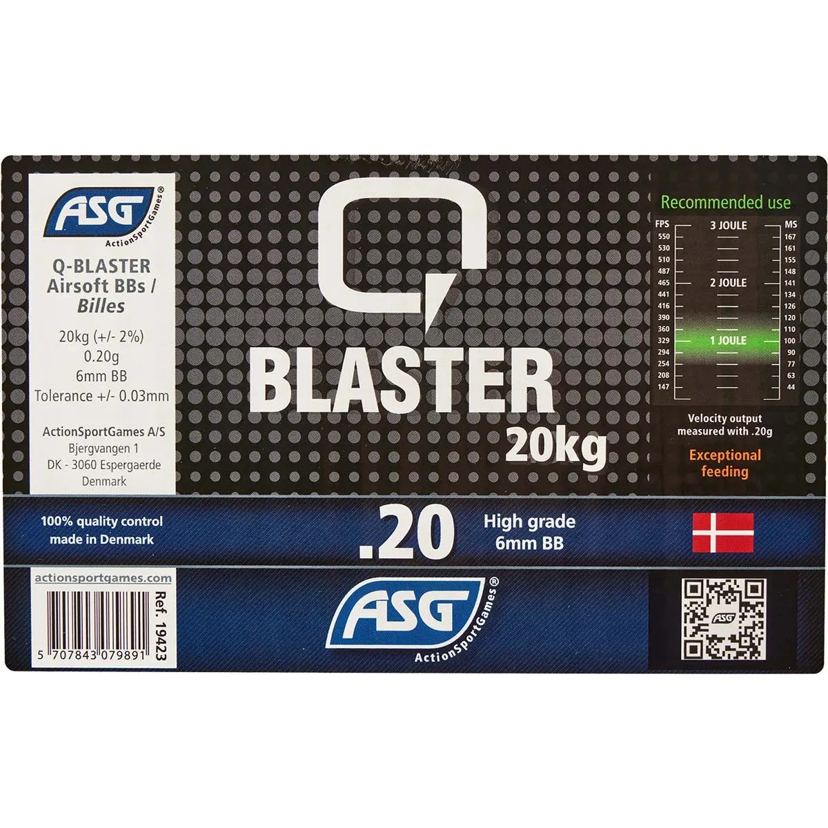 Q Blaster - это пластиковые шарики ВВ калибра 6 мм массой 0,2 г от датского производителя пневматического и страйкбольного оружия ASG. Пульки предназначены для использования со спринговыми (пружинными) страйкбольными пистолетами небольшой мощности. Особенностью пулек Q Blaster является наличие специального покрытия, благодаря которому обеспечивается невысокая потеря компрессии при стрельбе.
