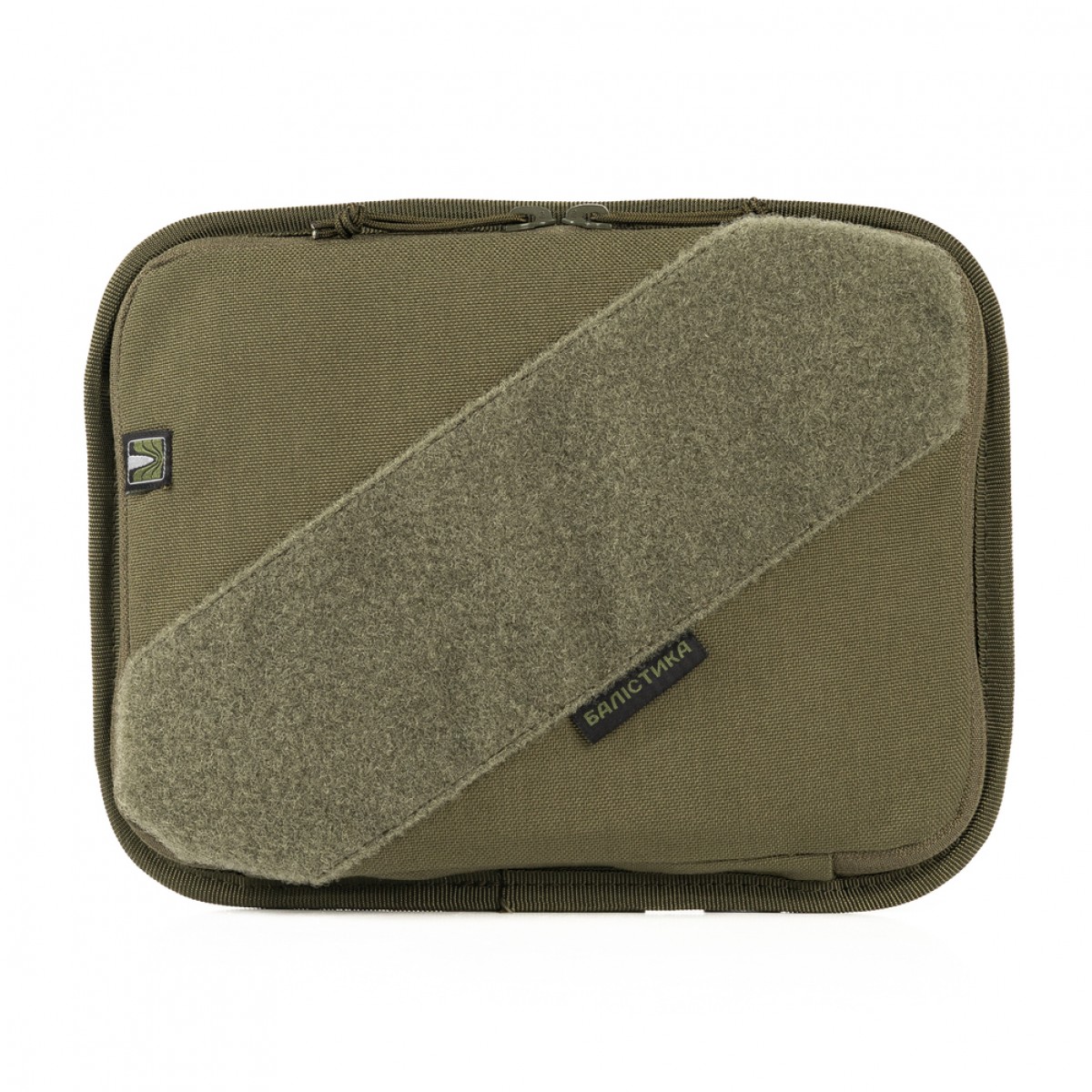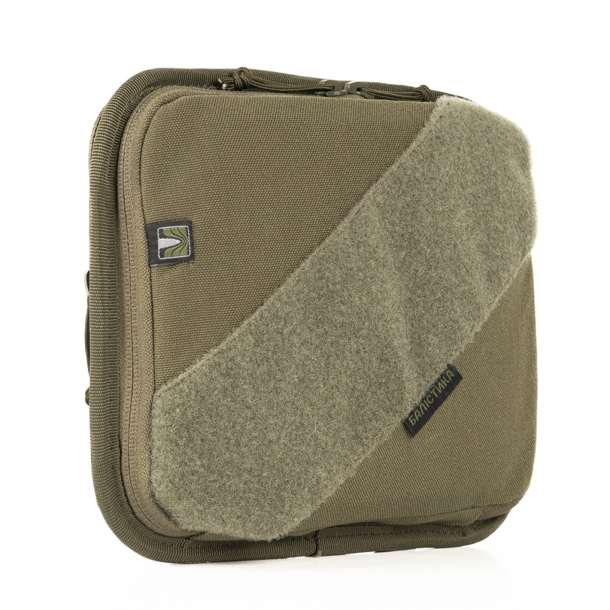 Подсумок от «Баллистика» позволяет комфортно переносить планшет до 9 дюймов. Это особенно пригодится военным, которые работают в сложных условиях и нуждаются в защите устройства от грязи, пыли, влаги и механических повреждений. При этом изделие достаточно просторное, чтобы вместить много других полезных инструментов. Особенности товара Подсумок состоит из двух отделов: Передний для планшета. Его передняя стенка оснащена карманом с клапаном, который изготовлен из прозрачной защитной пленки. Он имеет размер 22,5×16,5 см. Пленка предотвращает царапины, загрязнение устройства, при этом сохраняет четкость изображения и чувствительность сенсорного экрана. На второй стенке помещены петелька для карандаша и эластичная лента на всю ширину отдела, которая позволяет зафиксировать тактический блокнот всепогодный, карту, документы, офицерскую линейку (до 23 см) и пр. Задний утилитарный. Также имеет петельку для письменных принадлежностей и широкую резинку-фиксатор, которая разделена швами на четыре секции. В них можно поместить мультитул, фонарик, небольшие ножницы, складной нож и пр. К другим свойствам подсумка относятся такие: Фронтальная стенка внутри имеет слой пены, которая защищает содержимое от ударов. Внутренняя перегородка, которая разделяет отделы, усилена пластиковой вставкой, что позволяет изделию держать форму и предотвращает сминание бумаг. Также снаружи по всему периметру эта вставка обшита отделочной лентой для дополнительного укрепления. Отделение для планшета имеет широкое раскрывание до самого дна. С каждой стороны помещено по два паракордовых держателя, пришитые накрест. Они позволяют ограничивать угол раскрытия до 90°. Благодаря этому при размещении подсумка на груди плитоноски или бронежилета он служит рабочей платформой и при этом позволяет освободить руки. Отделы застегиваются на молнии, каждая из которых имеет по два бегунка, что позволяет расстегивать их на удобную сторону. При этом в переднем отделе бегунки встречаются, а в заднем – разбегаются на противоположные края. Подсумок надежно крепится к плитоноске на четыре секции системы MOLLE. К четырем петлям на крайних верхних и нижних ячейках MOLLE можно прикрепить ремешки 25 мм. Так можно будет носить подсумок на шее и поясе или только на плече. Ремешки не входят в комплект. Диагональная велкро-панель (27×8 см) на внешней стороне позволяет зафиксировать патчи или мелкие подсумки на липучке. Технические характеристики Внешний материал: нейлон 1000D. Внутренний материал: Oxford 340D. Липучка: Velcro. Размер подсумка: 25×19×4 см. Размер кармана: 22,5×16,5 см (под планшет до 9 дюймов). Вес: 280 г.Основные характеристики Подсумок административный навигационный XL (Олива)