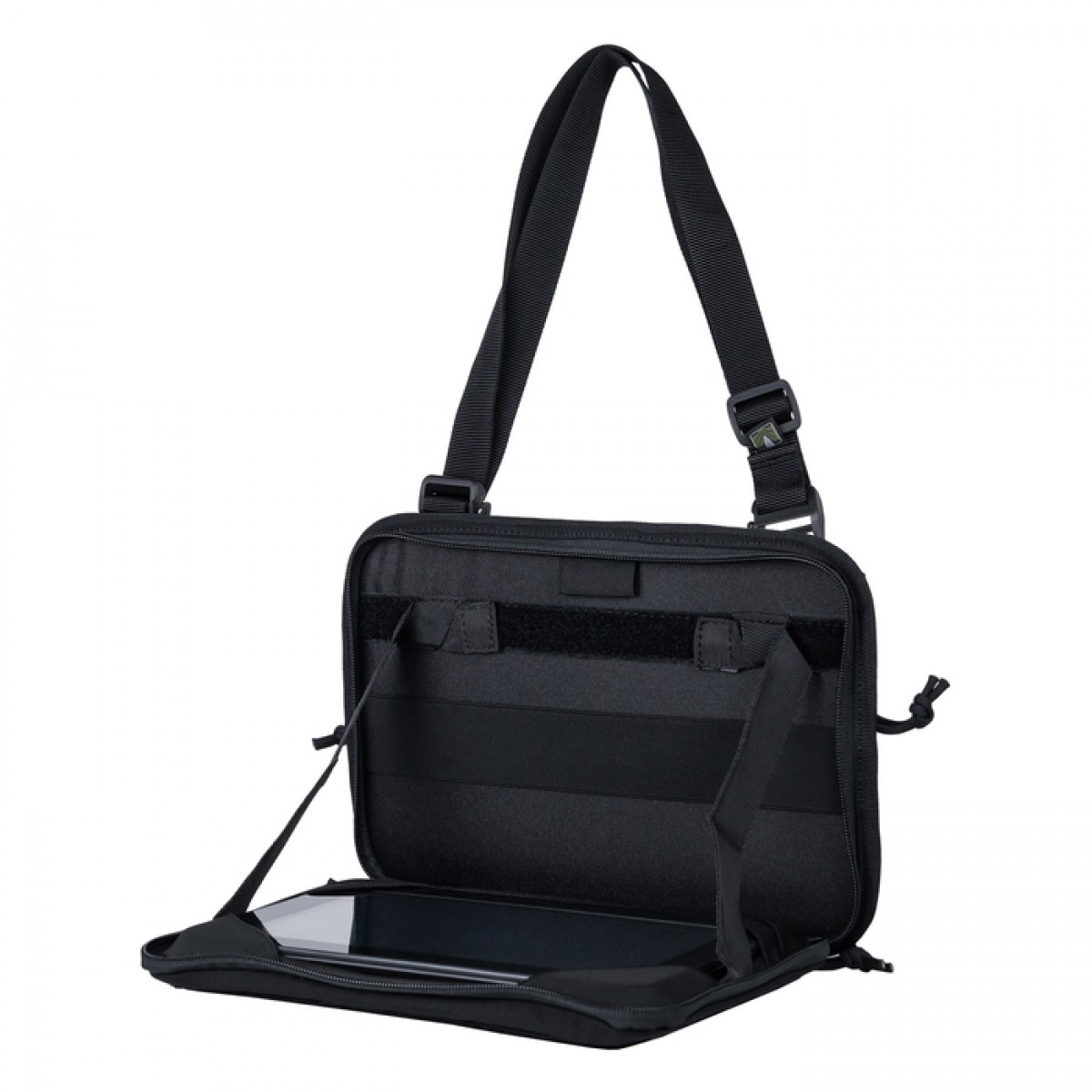 Подсумок от «Баллистики» является фронтальной частью честрига (нагрудного жилета). Но также может шнуроваться к плитоноске/бронежилету или использоваться отдельно как командирский планшет, сумка для оператора дрона или корректировщика артиллерии. Ее главное преимущество – мобильность. Обычно она располагается выше центра тяжести и не мешает во время бега или подъема вверх. Плоская форма и стенки, усиленные внутренними пластиковыми вставками, делают ее удобной для хранения планшета, телефона, документов, карт и т. д. Особенности товара Админсумка состоит из двух отделов на молниях: Отдел для планшета (10,1-10,6 дюйма). На передней стенке находятся уголки для закрепления устройства: сверху – эластичные одинарные, снизу – плотные двойные для крепления устройств разного размера. На второй стенке нашита сплошная эластичная лента (26×4 см), а сверху закреплена петелька для карандаша/ручки/маркера. Утилитарный отдел. Задняя стенка оснащена двойной резинкой-фиксатором для мелких вещей, которая разделена швами на много отрезков. На передней сверху помещена петелька для письменных принадлежностей, а снизу – три открытых кармана для тактической канцелярии: один большой (26×13 см) и два поменьше (13×10 см). К другим важным свойствам подсумка относятся следующие: Передняя панель внутри имеет слой пены и лист пластика, которые защищают содержимое от ударов и не допускают деформации подсумка. Внутренняя перегородка, разделяющая отделы, также содержит пластиковую вставку, что позволяет изделию держать форму и предотвращает сминание бумаг. Также снаружи по всему периметру эта вставка обшита отделочной лентой для дополнительного укрепления. Отделение для планшета имеет широкое раскрытие до самого дна. Оно оснащено держателями на липучке, которые позволяют регулировать угол его раскрытия (до 90°). Благодаря этому при размещении подсумка на груди плитоноски или бронежилета он служит рабочей платформой и при этом позволяет освободить руки. Отделы застегиваются на молнии, каждая из которых имеет по два бегунка, что позволяет расстегивать их на удобную сторону. При этом в переднем отделе бегунки встречаются, а в заднем – разбегаются на противоположные края. Подсумок надежно крепится к честригу или плитоноске на четыре секции системы MOLLE. Сбоку и сверху помещены крепления для шейного и поясного ремешков, которые входят в комплект. Благодаря им изделие можно носить на груди или на боку, как бананку – в зависимости от задач пользователя. Ремешки крепятся к петлям на рамки-карабины, а длину обоих можно регулировать с помощью пряжек. Ко дну пришиты два свободных карабина, которыми при необходимости можно прикрепить напашник «Ладник». На передней части сумки есть четыре ряда ячеек MOLLE, которые позволяют навешивать дополнительное снаряжение. Поверх ячеек нашита липучка для крепления патчей или других аксессуаров. Технические характеристики Внешний материал: нейлон 1000D. Внутренний материал: Oxford 340D. Стропа: полиамид, 2; 2,5 см. Фурнитура: пластиковые фастексы, двухщелевые пряжки, рамки-карабины (WJ), молнии (YKK). Внешние размеры: 28×20×5 см. Внутренние размеры отделения для планшета: 25,5×18 см (до 10,6 дюйма). Длина ремешков: 55-100 см. Вес: 560 г.Отзывы о Подсумок административный навигационный (Chest Rig) XL (Чёрный)