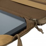 Подсумок от «Баллистики» является фронтальной частью честрига (нагрудного жилета). Но также может шнуроваться к плитоноске/бронежилету или использоваться отдельно как командирский планшет, сумка для оператора дрона или корректировщика артиллерии. Ее главное преимущество – мобильность. Обычно она располагается выше центра тяжести и не мешает во время бега или подъема вверх. Плоская форма и стенки, усиленные внутренними пластиковыми вставками, делают ее удобной для хранения планшета, телефона, документов, карт и т. д. Особенности товара Админсумка состоит из двух отделов на молниях: Отдел для планшета (10,1-10,6 дюйма). На передней стенке находятся уголки для закрепления устройства: сверху – эластичные одинарные, снизу – плотные двойные для крепления устройств разного размера. На второй стенке нашита сплошная эластичная лента (26×4 см), а сверху закреплена петелька для карандаша/ручки/маркера. Утилитарный отдел. Задняя стенка оснащена двойной резинкой-фиксатором для мелких вещей, которая разделена швами на много отрезков. На передней сверху помещена петелька для письменных принадлежностей, а снизу – три открытых кармана для тактической канцелярии: один большой (26×13 см) и два поменьше (13×10 см). К другим важным свойствам подсумка относятся следующие: Передняя панель внутри имеет слой пены и лист пластика, которые защищают содержимое от ударов и не допускают деформации подсумка. Внутренняя перегородка, разделяющая отделы, также содержит пластиковую вставку, что позволяет изделию держать форму и предотвращает сминание бумаг. Также снаружи по всему периметру эта вставка обшита отделочной лентой для дополнительного укрепления. Отделение для планшета имеет широкое раскрытие до самого дна. Оно оснащено держателями на липучке, которые позволяют регулировать угол его раскрытия (до 90°). Благодаря этому при размещении подсумка на груди плитоноски или бронежилета он служит рабочей платформой и при этом позволяет освободить руки. Отделы застегиваются на молнии, каждая из которых имеет по два бегунка, что позволяет расстегивать их на удобную сторону. При этом в переднем отделе бегунки встречаются, а в заднем – разбегаются на противоположные края. Подсумок надежно крепится к честригу или плитоноске на четыре секции системы MOLLE. Сбоку и сверху помещены крепления для шейного и поясного ремешков, которые входят в комплект. Благодаря им изделие можно носить на груди или на боку, как бананку – в зависимости от задач пользователя. Ремешки крепятся к петлям на рамки-карабины, а длину обоих можно регулировать с помощью пряжек. Ко дну пришиты два свободных карабина, которыми при необходимости можно прикрепить напашник «Ладник». На передней части сумки есть четыре ряда ячеек MOLLE, которые позволяют навешивать дополнительное снаряжение. Поверх ячеек нашита липучка для крепления патчей или других аксессуаров. Технические характеристики Внешний материал: нейлон 1000D. Внутренний материал: Oxford 340D. Стропа: полиамид, 2; 2,5 см. Фурнитура: пластиковые фастексы, двухщелевые пряжки, рамки-карабины (WJ), молнии (YKK). Внешние размеры: 28×20×5 см. Внутренние размеры отделения для планшета: 25,5×18 см (до 10,6 дюйма). Длина ремешков: 55-100 см. Вес: 560 г.Отзывы о Подсумок административный навигационный (Chest Rig) XL (Койот)