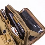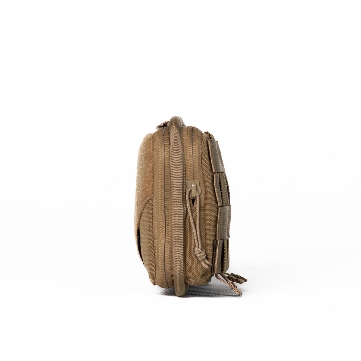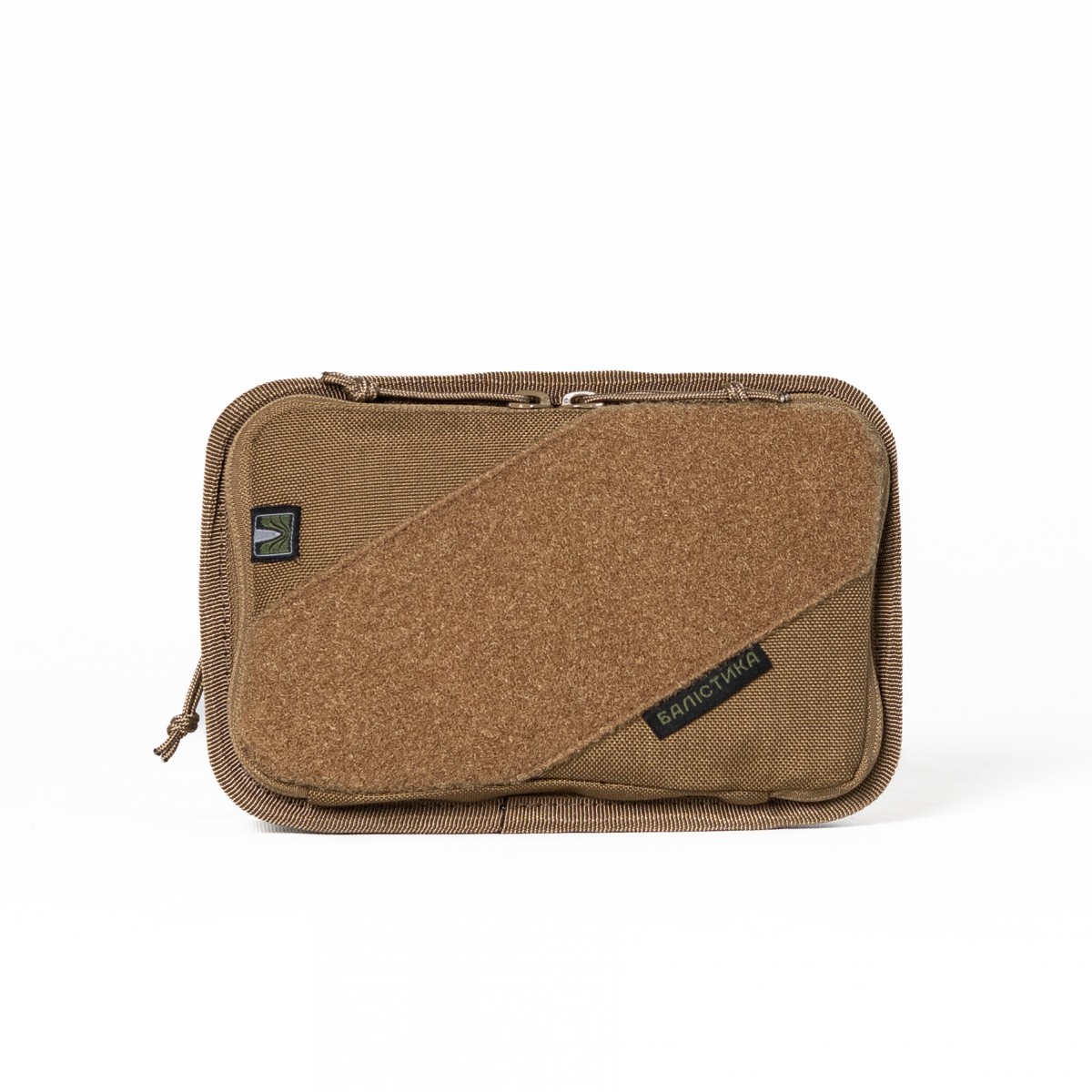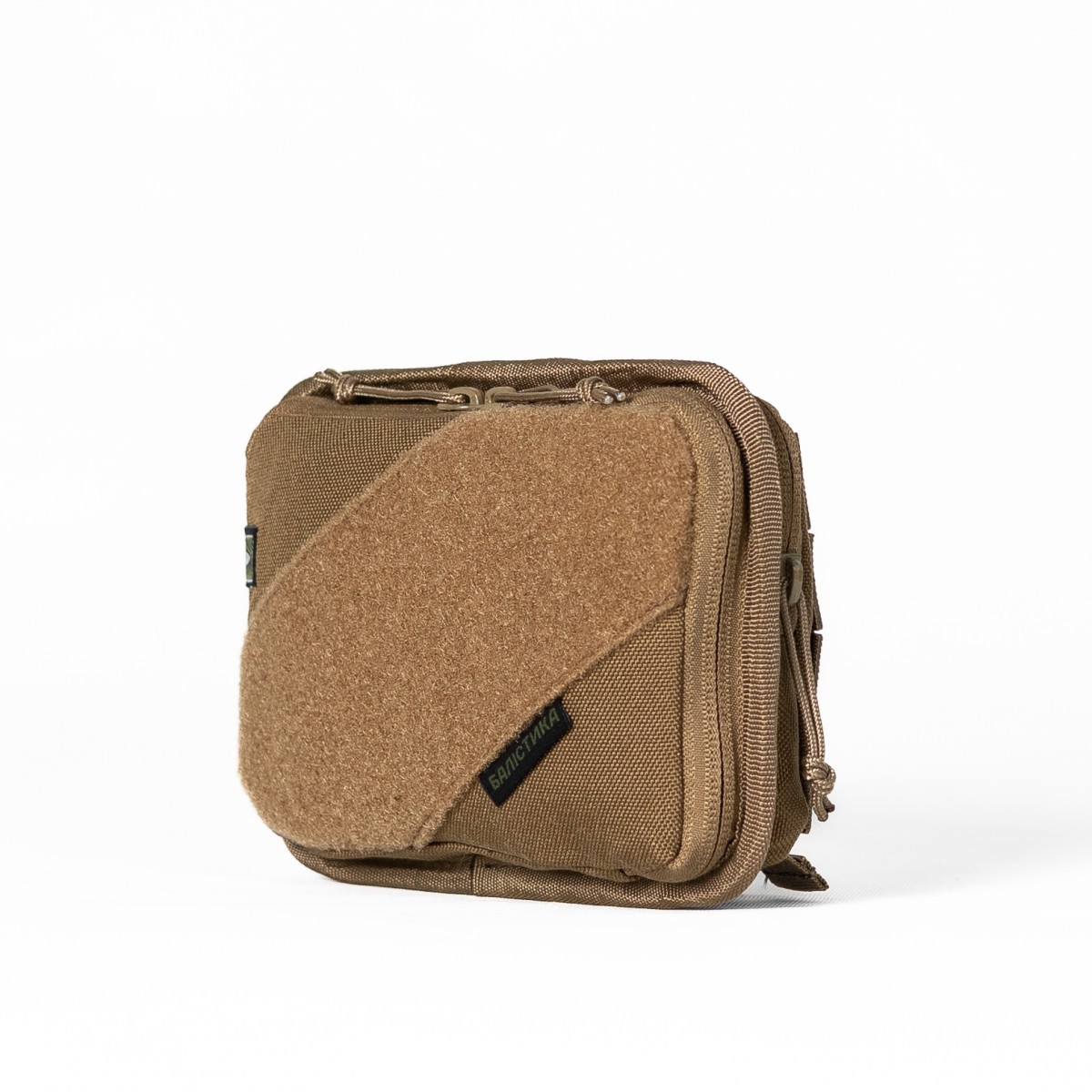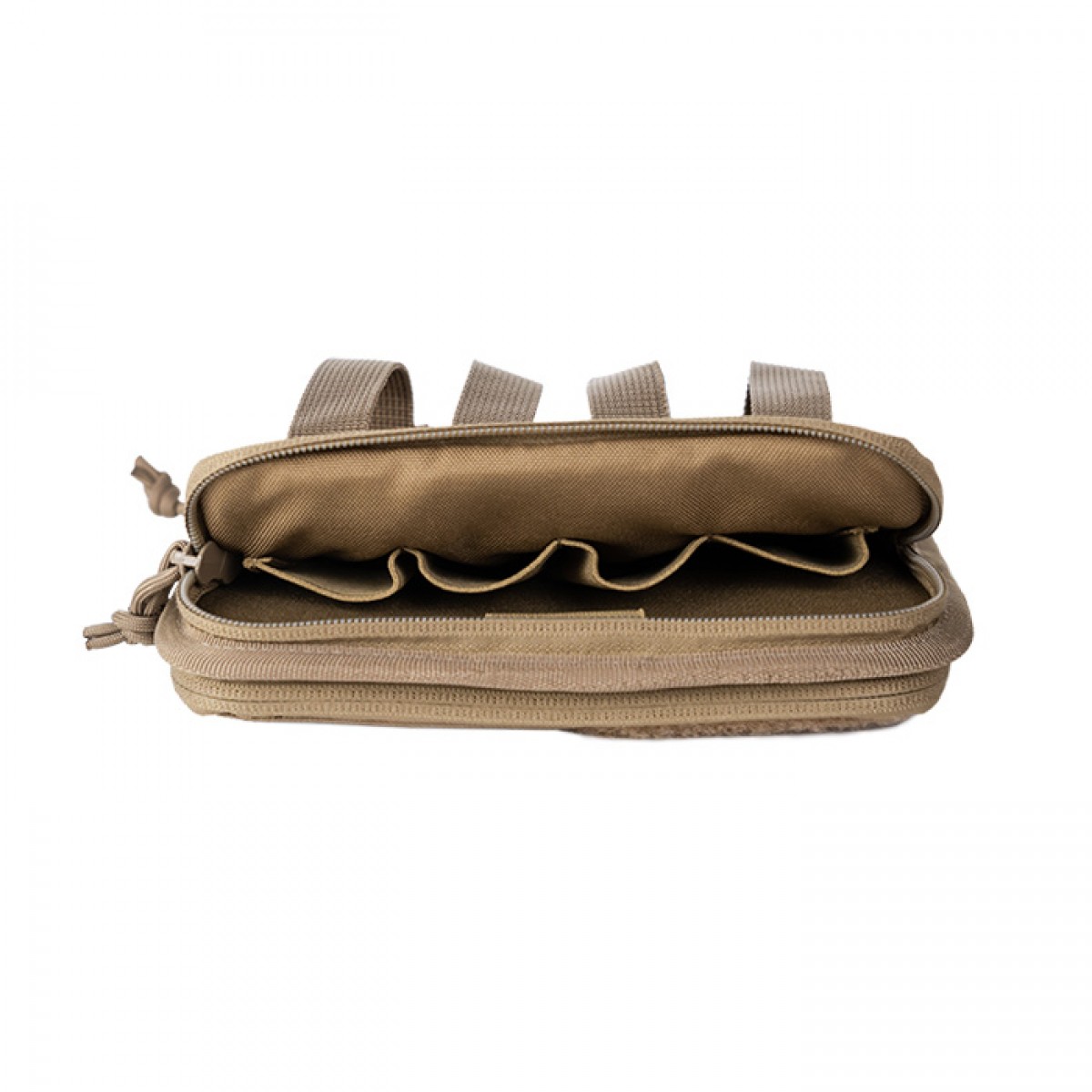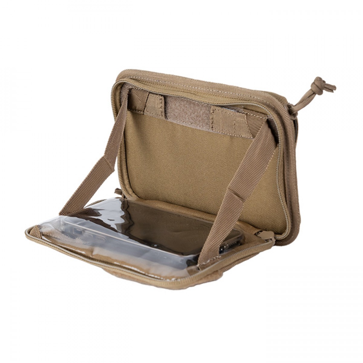 Подсумок от «Баллистика» позволяет комфортно переносить телефон до 7 дюймов. Это особенно пригодится военным, которые работают в сложных условиях и нуждаются в защите устройства от грязи, пыли, влаги и механических повреждений. Изделие компактное, но, кроме смартфона, может вместить еще несколько полезных вещей. Особенности товара Подсумок состоит из двух отделений: Переднее для телефона. Внутри находится карман с клапаном (17×11 см), выполненный из прозрачной защитной пленки. Эта пленка предотвращает царапины, загрязнение устройства, при этом сохраняет высокую скорость отклика сенсорного экрана и четкость картинки. Заднее утилитарное. Имеет петельку для карандаша и широкую резинку-фиксатор, которая разделена швами на четыре секции. В них можно поместить небольшие плоские предметы: фонарик, миниатюрные ножницы, складной нож и пр. К другим преимуществам изделия относятся следующие: Фронтальная стенка содержит внутри слой пены, которая защищает телефон от случайных ударов. Внутренняя перегородка усилена пластиковой вставкой, благодаря которой изделие держит форму. А снаружи по всему периметру эта вставка обшита отделочной лентой для дополнительного укрепления. Отделение для телефона имеет широкое раскрытие, а два держателя, которые фиксируются на велкро, позволяют регулировать угол раскрытия до 90°. Благодаря этому при размещении подсумка на передней панели плитоноски или бронежилета он послужит рабочей платформой и при этом освободит руки бойца. Отделения застегиваются на молнии, каждая из которых оснащена двумя бегунками, которые можно расстегивать на одну или другую сторону. При застегивании переднего отдела бегунки встречаются (в любой точке наверху или сбоку), а заднего – разбегаются на противоположные концы. Подсумок шнуруется к плитоноске четырьмя стропами MOLLE. Спереди имеет диагональную велкро-панель (21×8 см), на которую можно крепить шевроны или мелкие подсумки на липучке. Технические характеристики Внешний материал: нейлон 1000D. Внутренний материал: Oxford 340D. Липучка: Velcro. Размер подсумка: 20,5×13×4 см. Размер кармана: 17×11 см (под телефон до 7 дюймов). Вес: 190 г.Отзывы о Подсумок административный навигационный (Койот)