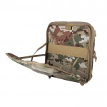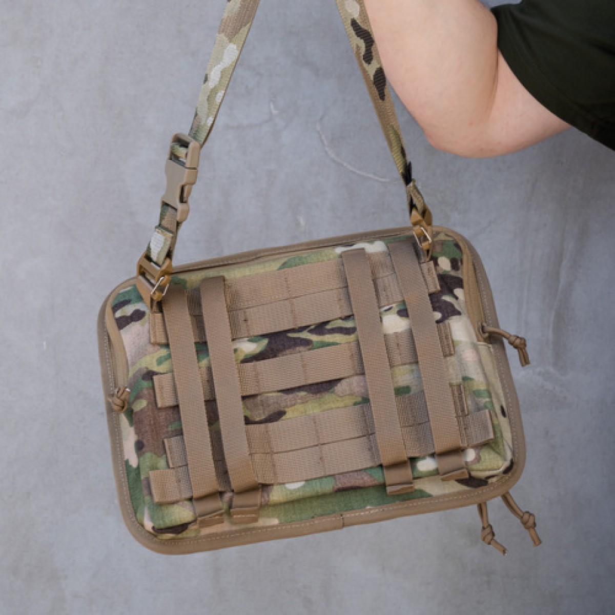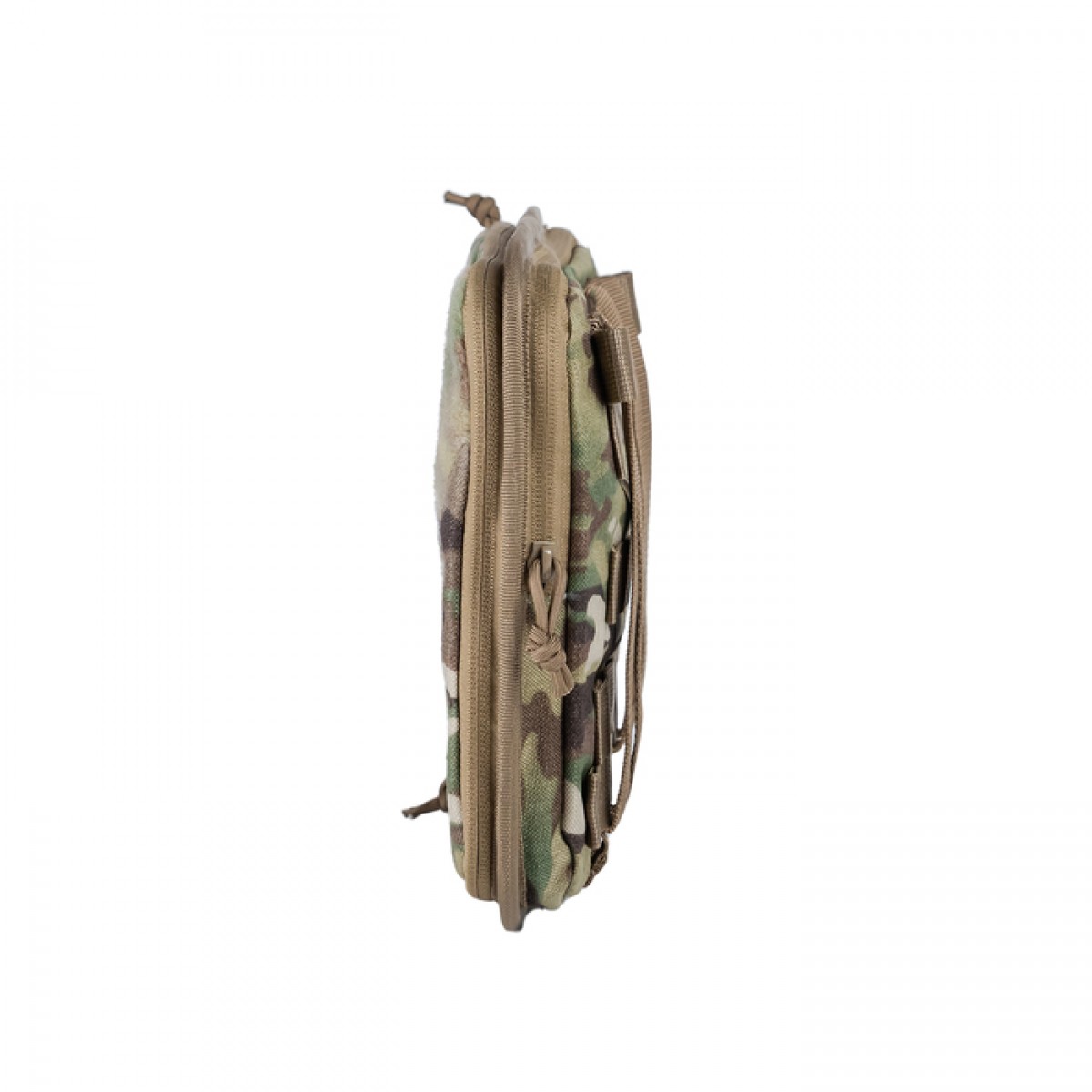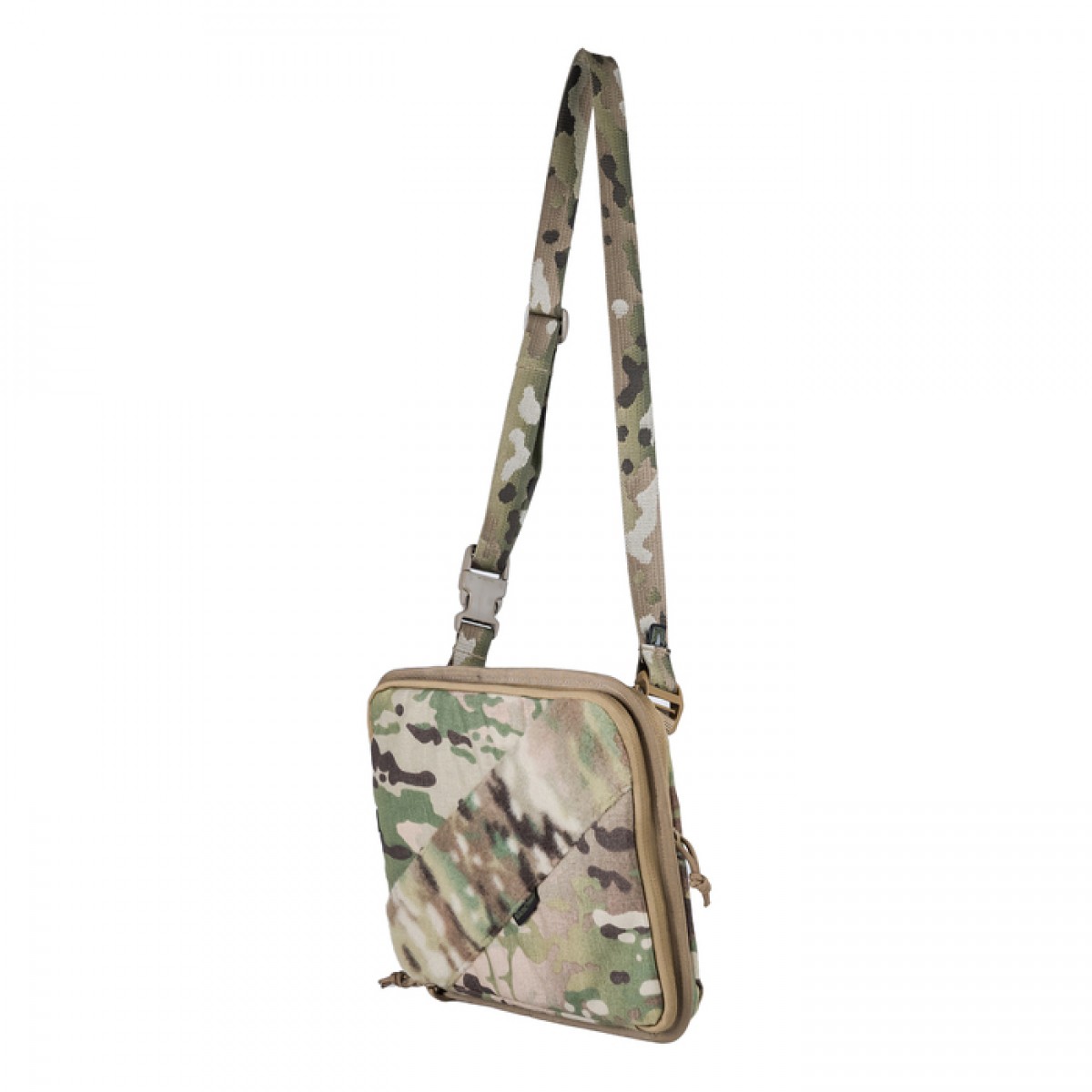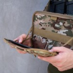 Административный подсумок от «Баллистика» позволяет транспортировать планшет до 13 дюймов. Изделие создано с учетом потребностей военных, которые работают в сложных условиях и нуждаются в защите устройства от грязи, пыли, влаги и механических повреждений. При этом подсумок достаточно просторный, чтобы вместить дополнительный инвентарь. Особенности товара Подсумок состоит из двух отделов: Передний для планшета. Передняя стенка отдела оснащена велкро-панелью (21×10 см). Конструкция состоит из жесткой липучки, которая пришита к подсумку, и мягкой накладки, которая снаружи имеет самоклеящуюся поверхность. Именно к ней крепится планшет и вместе с ней отсоединяется/присоединяется к жесткому велкро. На второй стенке отдела помещены петелька для карандаша и эластичная лента на всю ширину, которая позволяет зафиксировать тактический блокнот всепогодный, карту, документы, офицерскую линейку (до 29 см) и пр. Задний утилитарный. Также имеет петельку для письменных принадлежностей и широкую резинку-фиксатор, которая разделена швами на четыре секции. В них можно поместить мультитул, фонарик, небольшие ножницы, складной нож и пр. К другим особенностям подсумка относятся следующие: Фронтальная стенка внутри заполнена пеной, которая защищает содержимое от ударов. Внутренняя перегородка, которая разделяет отделы, усилена пластиковой вставкой, которая держит форму изделия и предотвращает сминание бумаг. Также снаружи по всему периметру эта вставка обшита отделочной лентой для дополнительного укрепления. Отделение для планшета имеет широкое раскрывание до самого дна. С каждой стороны нашиты по два держателя из тесьмы (шириной 8 мм), закрепленные накрест. Они позволяют ограничивать угол раскрытия до 90°. Благодаря этому при размещении подсумка на груди плитоноски или бронежилета он служит рабочей платформой и при этом освобождает руки. Отделы застегиваются на молнии, каждая из которых имеет по два бегунка, что позволяет расстегивать их на удобную сторону. При этом в переднем отделе бегунки встречаются, а в заднем – разбегаются на противоположные края. Подсумок надежно шнуруется к плитоноске на четыре секции системы MOLLE. В комплект входит регулируемый ремешок, который позволяет носить изделие на шее или через плечо. Для этого карабины, которыми он оснащен, продеваются через петли на крайних ячейках MOLLE. Диагональная велкро-панель (33×8 см) на внешней стороне подсумка позволяет крепить патчи или мелкие подсумки на липучке. Технические характеристики Внешний материал: Cordura 500D. Внутренний материал: Oxford 340D. Липучка: Velcro. Размер подсумка: 31,5×23,5×4 см. Внутренний размер отделения под планшет: 29×20 см (до 13 дюймов). Длина ремешка: от 64 до 110 см. Вес: 430 г.Отзывы о Подсумок административный навигационный XXL Велкро (Мультикам)