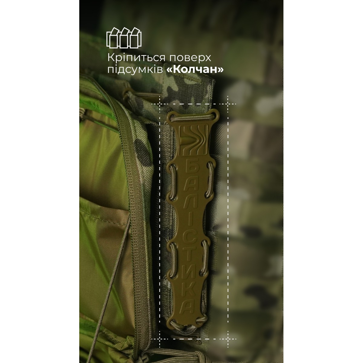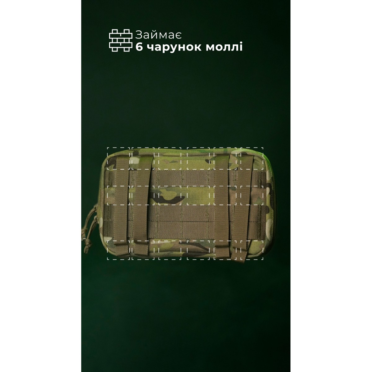 Низкопрофильный подсумок «Берестяник» рассчитан на планшет диагональю до 8 дюймов. Этот вариант лучше всего подойдет для устройств с массивными бамперами. Для защиты от ударов служат пена и пластик в стенках. ✅ Ключевые преимущества Предназначен для планшета до 8ʺ Шокорд с фиксатором для крепления устройства Открытый карман для мелочей Регулируемый угол раскрытия Двойная эластичная манжета под канцелярию Демпферные и пластиковые вставки для защиты от повреждений Крепится на ширину 6 ячеек молли, в частности на 3 трех подсумках «Колчан» Можно носить на ремешке (в комплекте) Внешняя велкро-панель под патчи и идентификаторы Описание товара «Берестяник» выполнен в минималистичном стиле и имеет одно отделение. Кроме планшета, в нем также поместятся несколько мелких вещей (необязательно одновременно) – карта, блокнот формата А5, зарядное устройство, павербанк, пара энергетических батончиков и т. д. На передней стенке размещено крепление для планшета – протянутый по периметру шоккорд с фиксатором. Благодаря эластичности он надежно удерживает как тонкие, так и габаритные модели. На задней стенке нашит открытый карман с невысоким бортиком (23,5×10,5 см). Снаружи на этом кармане размещена двойная манжета из эластичной тесьмы, в которую можно вложить ручку, маркер или карандаш. Сумка застегивается молнией с двумя бегунками и имеет широкое раскрытие до дна. ✔️ Держатель из миникорда и фиксатор позволяют регулировать угол раскрытия. ✔️ Благодаря этому при размещении подсумка на передней панели плитоноски или бронежилета он выступает рабочей платформой и освобождает руки. Стенки подсумка оснащены демпферами и пластиковыми вставками. В боковинах и дне также зашита пенка. Подсумок шнуруется к плитоноске четырьмя стропами и занимает ширину шести ячеек молли. Оптимально закрепить его сверху на трех «Колчанах». При необходимости его можно носить на ремешке (110×2,5 см) через плечо. ✔️ Ремешок поставляется вместе с подсумком и крепится карабинами к крайним верхним ячейкам молли или вертикальным стропам. ✔️ Фастекс на нем обеспечивает быстрое снятие, а двухщелевая рамка – регулировку под комплекцию. Спереди предусмотрена фирменная косая велкро-панель (~27×8 см), на которую можно крепить патчи и идентификаторы. ❓ Часто задаваемые вопросы Поместится ли планшет на 10 дюймов? Подсумок создан под планшеты до 8 дюймов. Можно ли стирать подсумок? Рекомендуем только ручную стирку с безфосфатным порошком в воде комнатной температуры. Не применяйте чрезмерную силу и жесткие щетки при очистке.Отзывы о Подсумок для планшета "Берестяник" (До 8" | Мультикам неоригинальный) ТМ Баллистика