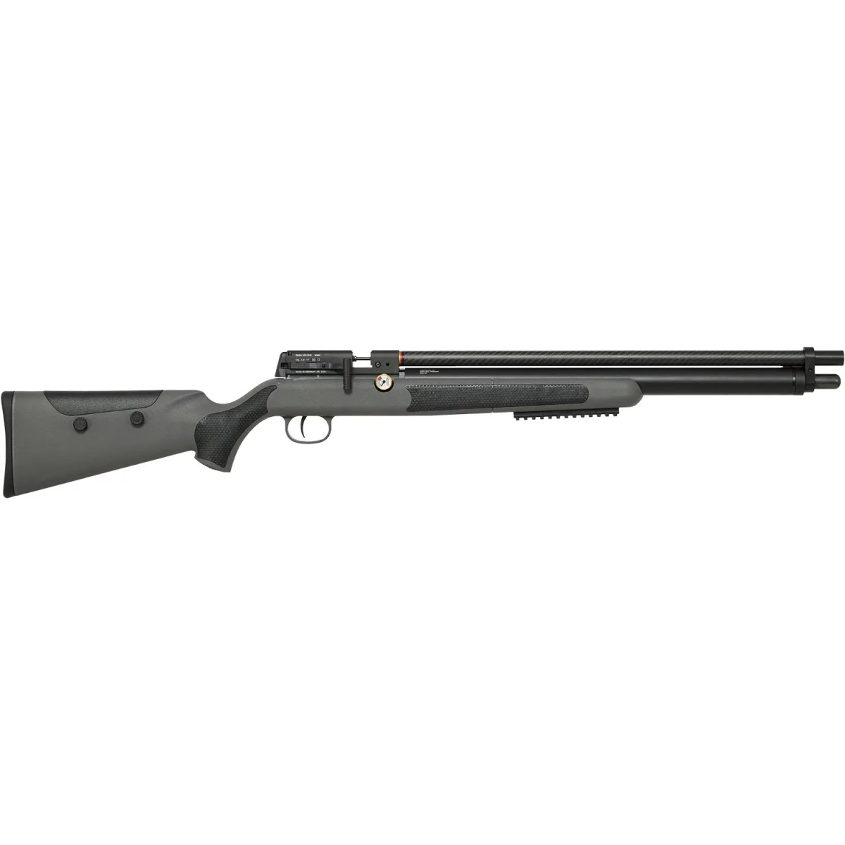 Еще одной конструктивной особенностью является расположение манометра HPA. Он размещен в передней части напорной трубки и повернут к стрелку, что позволяет контролировать уровень давления в резервуаре, не меняя положения при стрельбе. Большим преимуществом такого решения является безопасность, так как для проверки давления не нужно переворачивать винтовку стволом вниз.