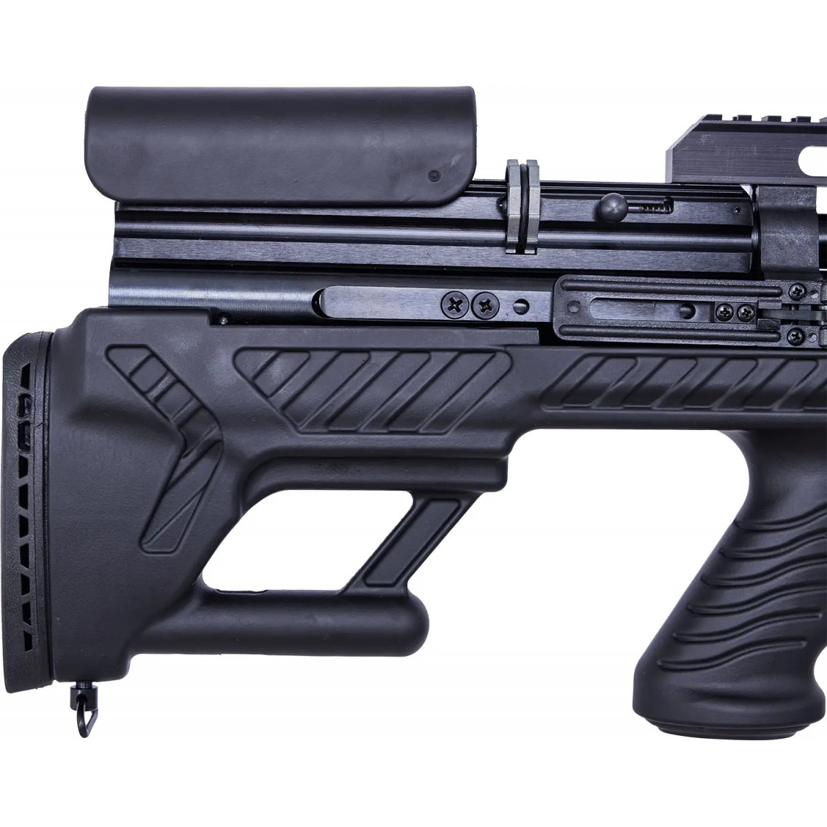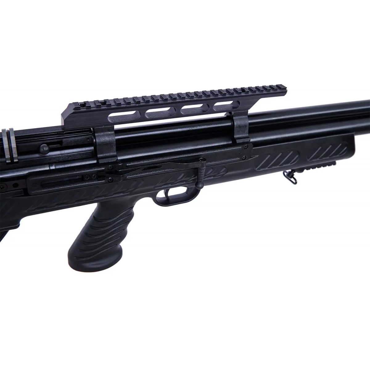 Optima Bull Boss - PCP винтовка в компоновке булпап. Такая компоновка позволяет винтовке иметь достаточно длинный ствол без увеличения общей длины оружия не нарушая балансировку. Винтовка оснащена стальным нарезным стволом длиной 585 мм с встроенным саундмодератором Quiet Energy, снижающим звук выстрела примерно на 50%.