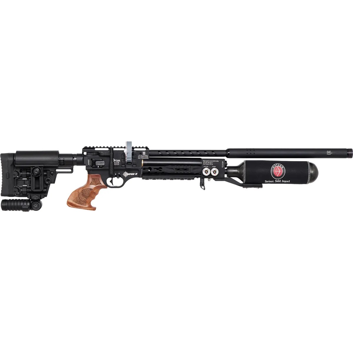 Винтовка оснащена съемным резервуаром высокого давления, а также регулируемым редуктором для обеспечения лучшей производительности при стрельбе.
