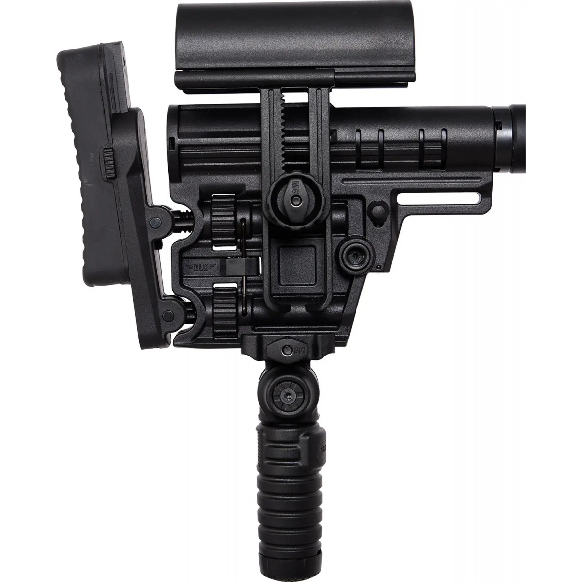 Модель Factor Sniper обладает модульным 6-ти позиционным прикладом стандарта Mil-Spec с регулируемой щекой и затыльником.