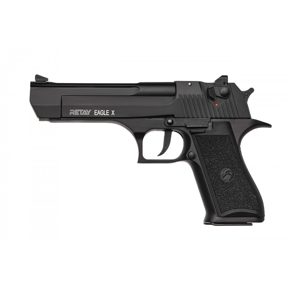 Retay Eagle-X Black является полуавтоматическим стартовым пистолетом, репликой знаменитого пистолета Desert Eagle (Пустынный орел). Именно модификациями Desert Eagle были вооружены герои "Матрицы", "Универсального солдата"...
