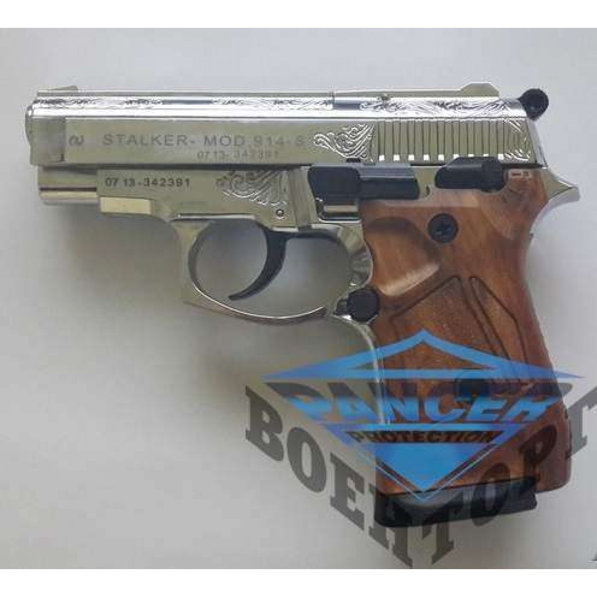 Пистолет стартовый (газо-шумовой) Stalker - 2918 блестяще хромированное с гравировкой
