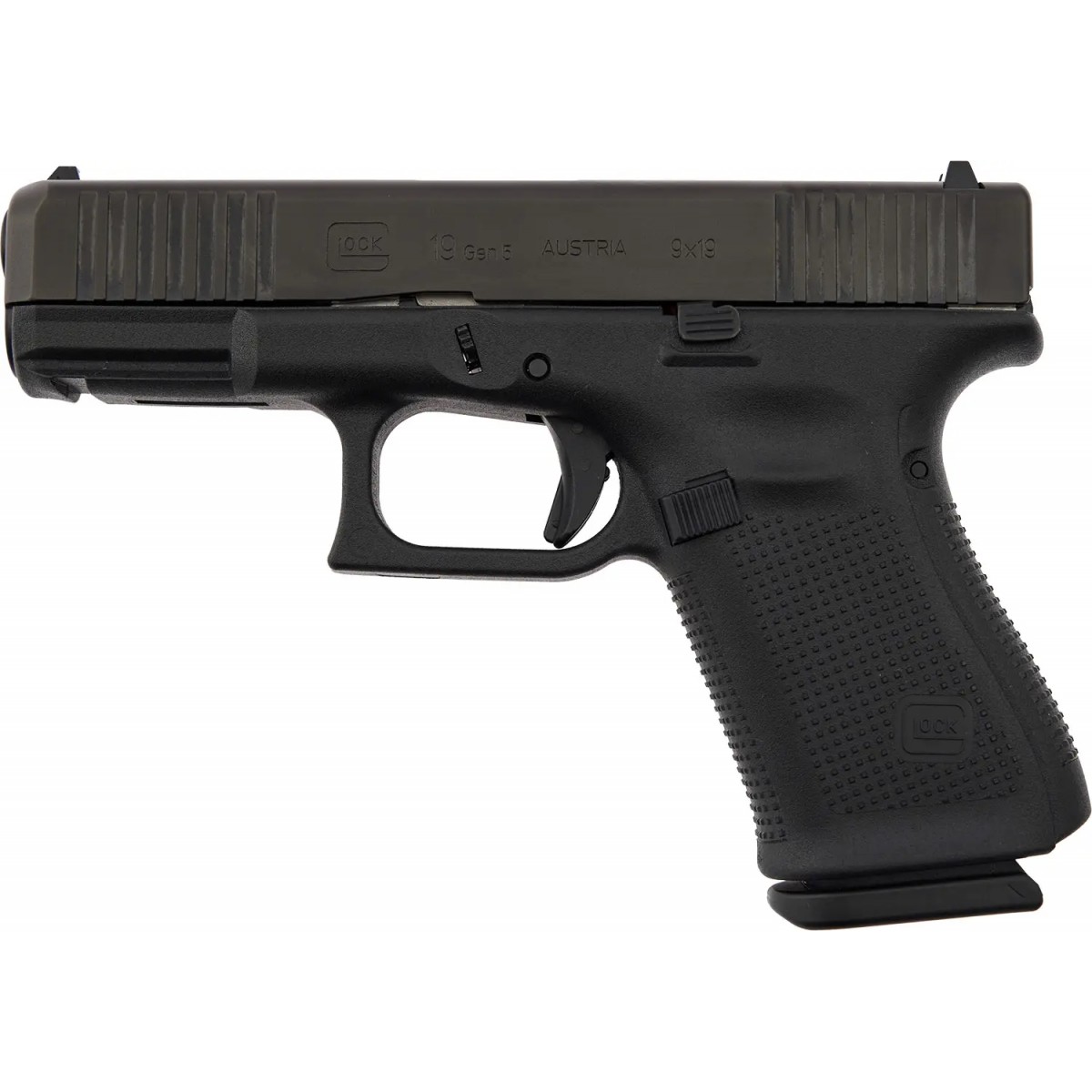 Пистолет Glock 19 Gen5 – это компактная версия легендарного Glock 17. Использует патрон калибра 9 мм (9х19) и комплектуется двумя магазинами под 15 патронов. В комплект входят накладки на рукоятку, благодаря которым можно настроить пистолет под руку стрелка. Также пистолет содержит ускоритель для зарядки патронов в магазин, благодаря чему уменьшается время зарядки и усилия стрелка для помещения патронов в магазин.