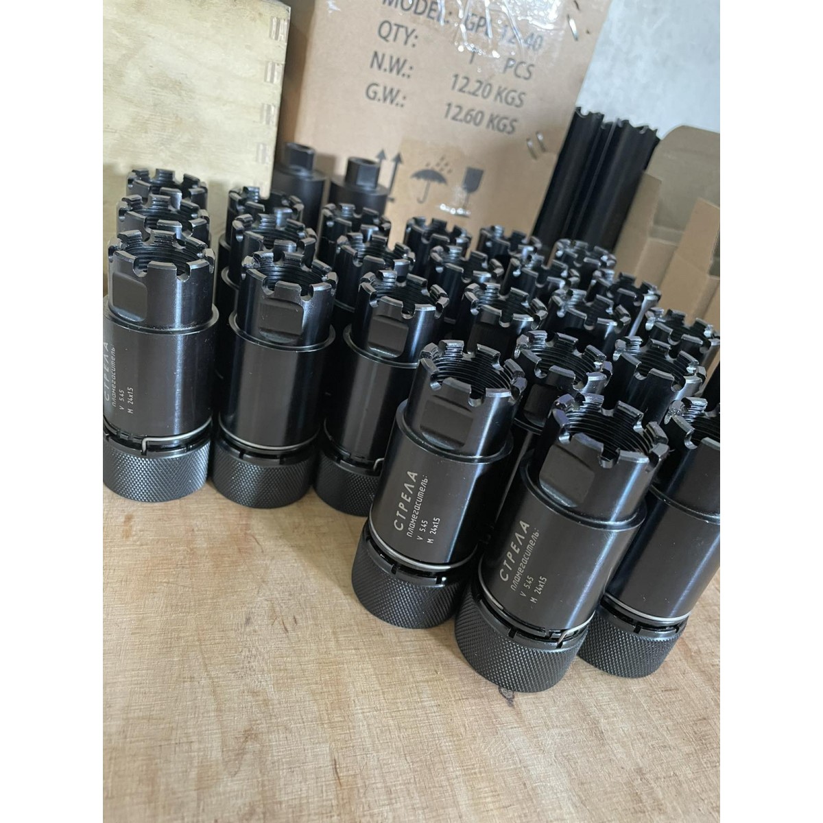 Важно: Не подходит на АК-105. АК-74Н. Пламегаситель был спроектирован так, что работает только с муфтами размером от края ствола до мушки 26-27 мм, при других размерах хорошая работа не гарантируется.
