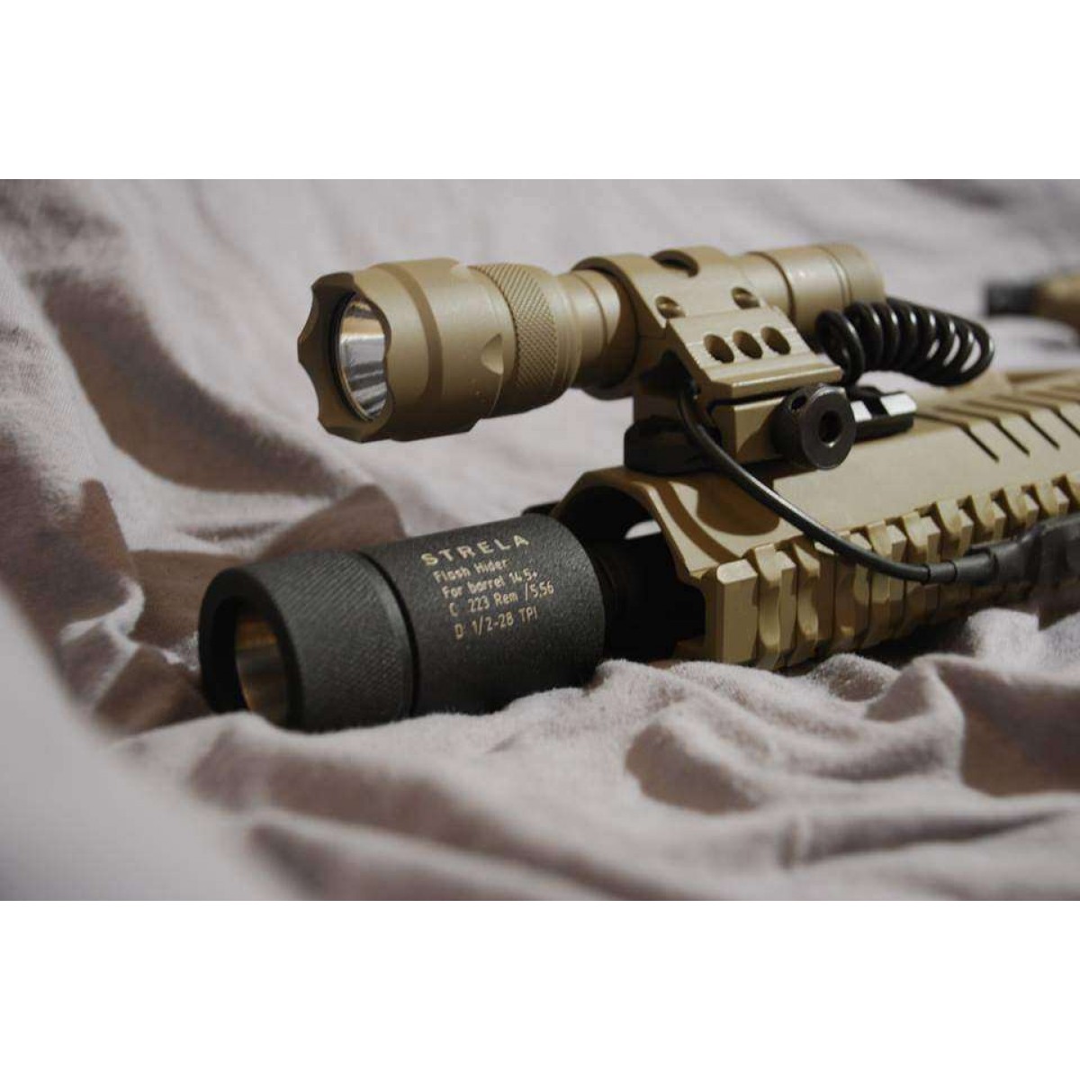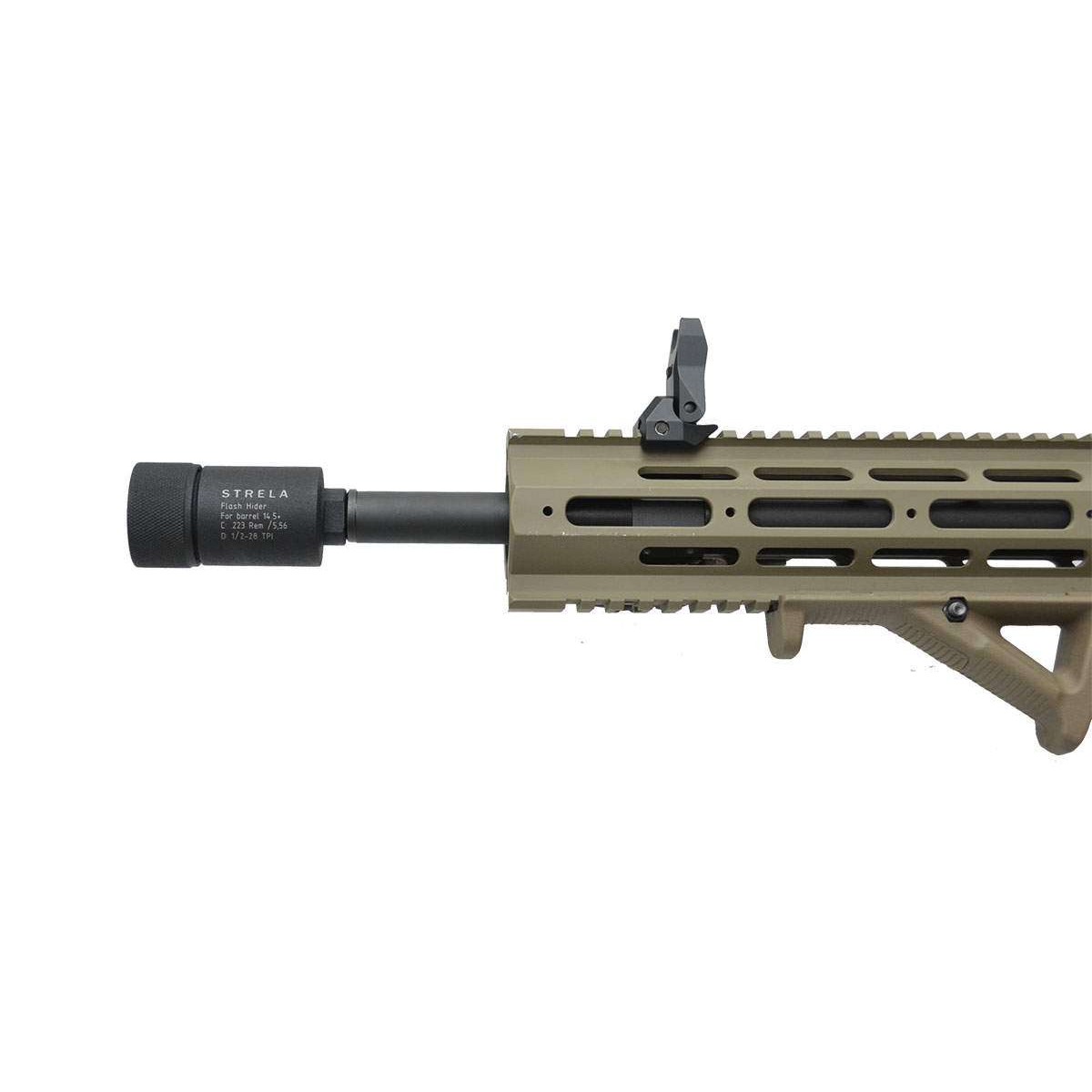 Пламегаситель для карабинов AR-15, Z-15, Norinco CQ-A эффективно убирает вспышку на стволах 10.5 дюйма на 90%, на стволах 14.5 и больше - на 94%. Данное устройство полностью исключает ослепление стрелка дульным пламенем при выстреле и помогает сохранить маскировку позиции.