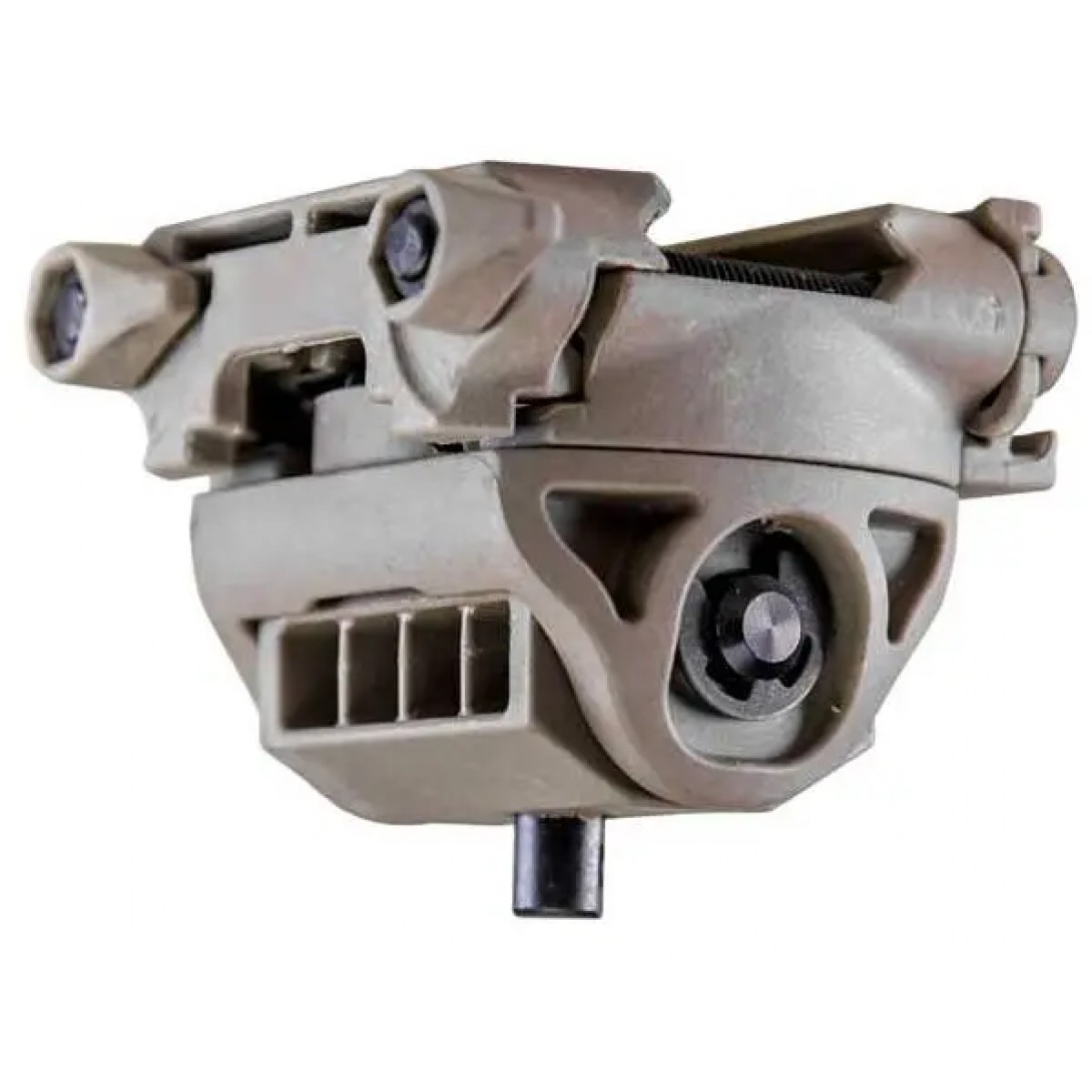 Адаптер изготовлен из прочного и легкого полимера. Основными особенностями являются: поворотный и наклонный механизм, который приводиться в действие при нажатии на кнопку, обеспечивающий превосходную стабильность при стрельбе по движущимся целям. Адаптер крепиться на любое оружие, которое имеет нижнюю планку Picatinny/Weaver.