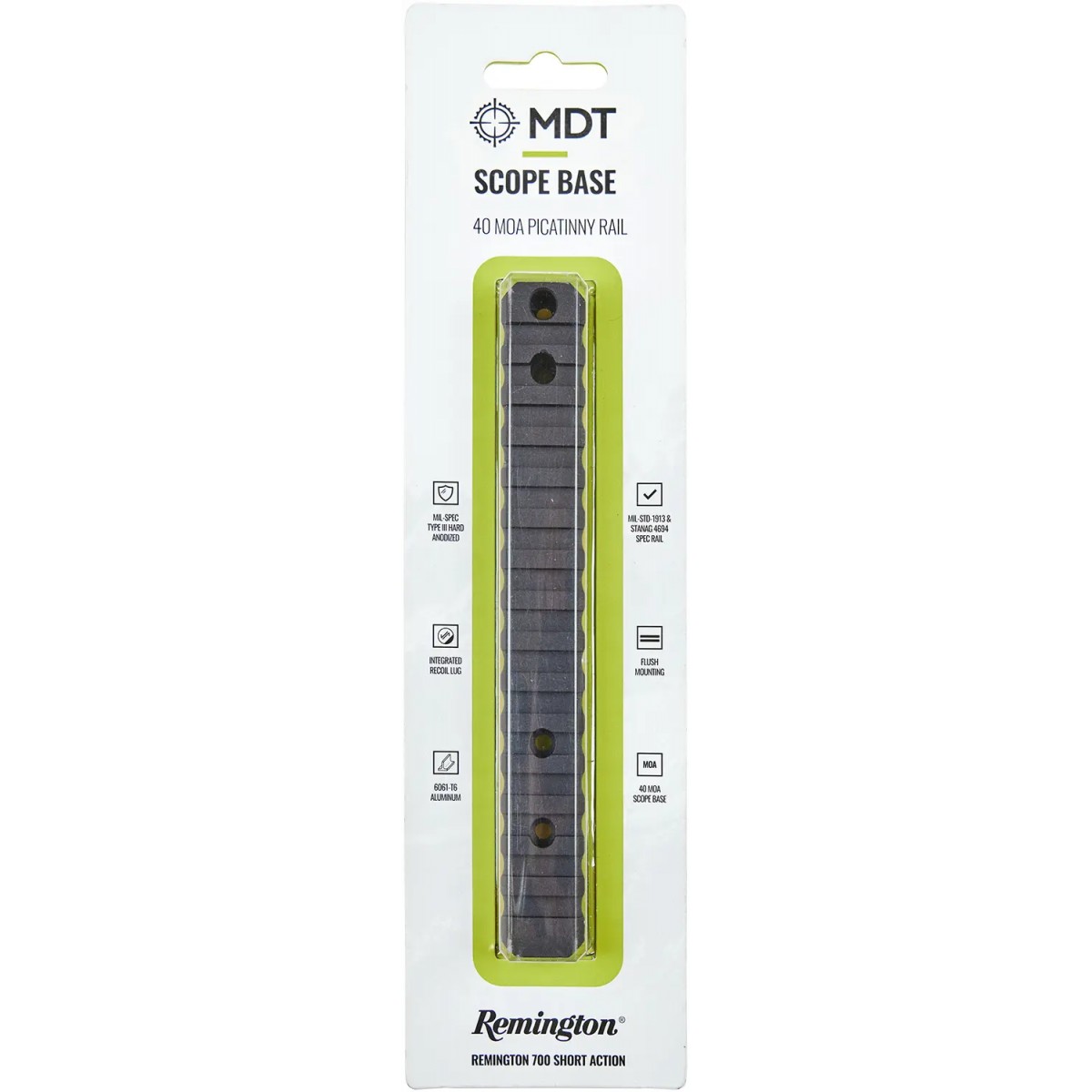 Данная планка MDT подходит для карабинов Remington 700 Short Action. Изготовлена по стандартам MIL-STD-1913 и STANAG 4694 на станке с ЧПУ из авиационного алюминия марки 6061-T6. Имеет твердое анодированное покрытие Mil-Spec Type II. Угол наклона - 40 MOA.