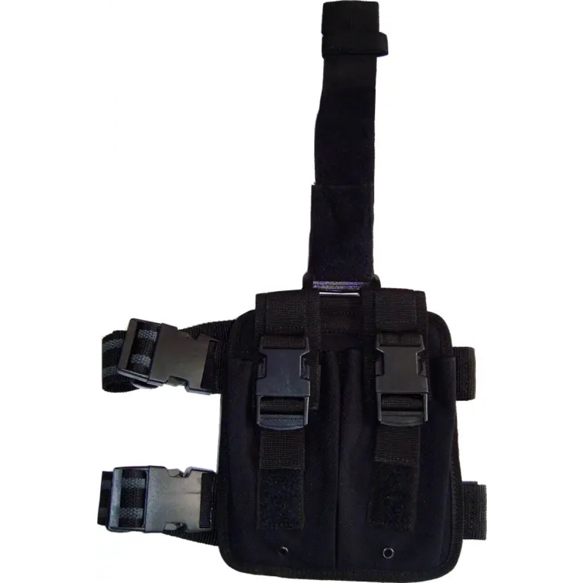 Defcon 5 DOUBLE LEG MAGAZINE POUCH — тактический набедренный подсумок для для ношения двух запасных магазинов для патронов калибра 5,56. Модель выполнена из высокопрочного нейлона 1000D, способного выдерживать высокие нагрузки. Каждый карман закрывается с помощью пряжки фастекс. Модель крепится к поясу одной стропой с пряжкой фастекс и двумя лямками с фастексами к ноге. Подсумок оборудован системой крепления MOLLE.Основные характеристики Подсумок Defcon 5 DOUBLE LEG MAGAZINE POUCH. Black