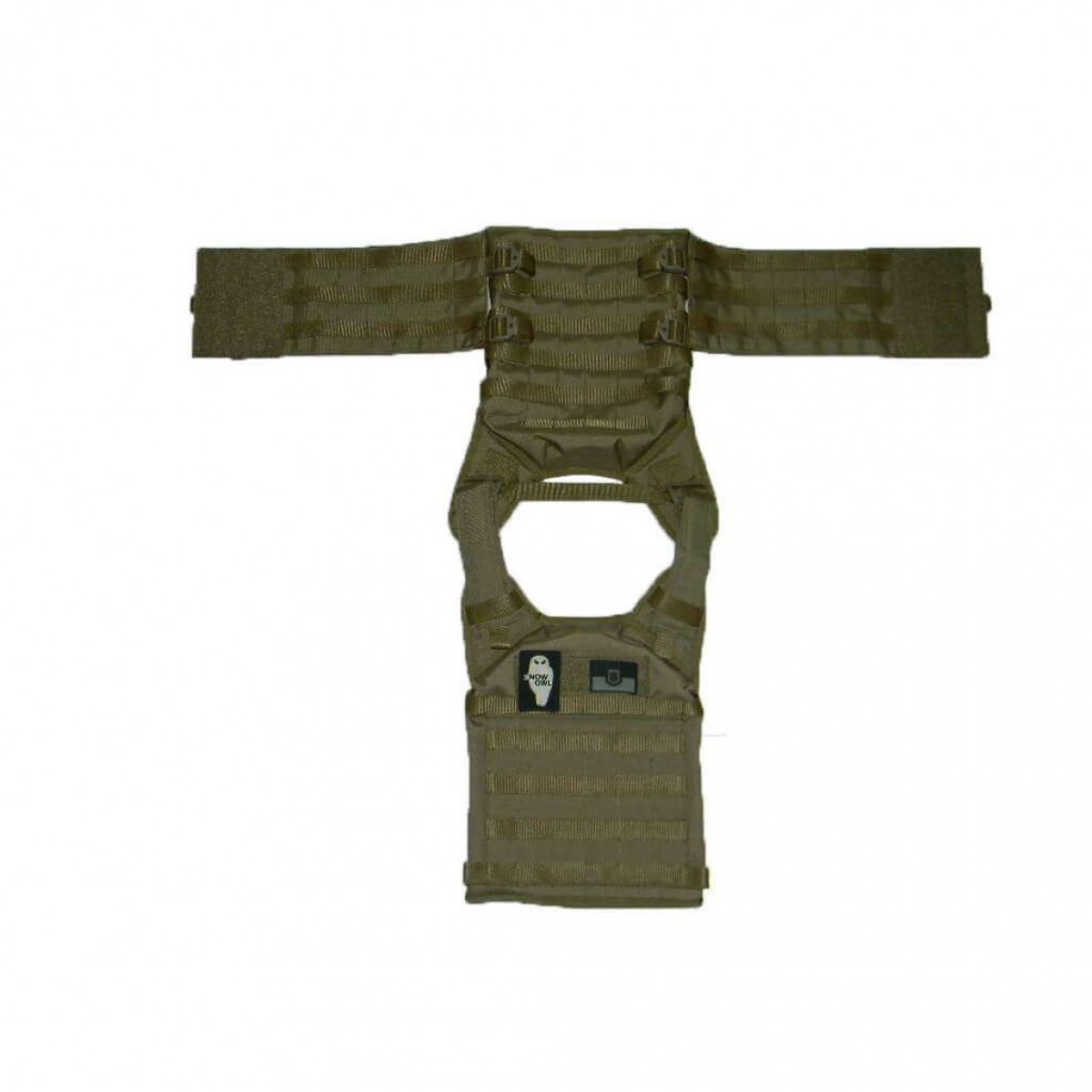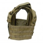 Чехол бронежилета состоит из двух панелей-фронтальной и спинной.Панели соединяются плечевыми лямками и боковыми панелями с интерфейсом MOLLE.Плечевые лямки снабжены мягкими вставками и имеют регулировку по высоте.