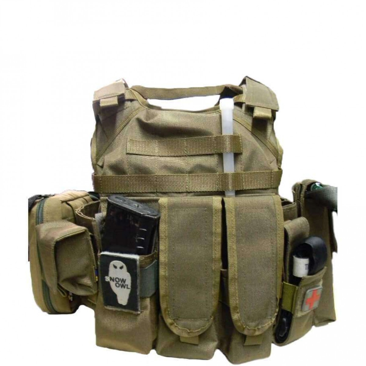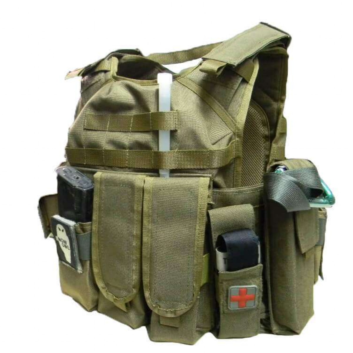 Передняя панель имеет 5 лент системы MOLLE для размещения совместимых подсумков и снаряжения.В верхней части нашита лента велкро для крепления патчей и идентификаторов.