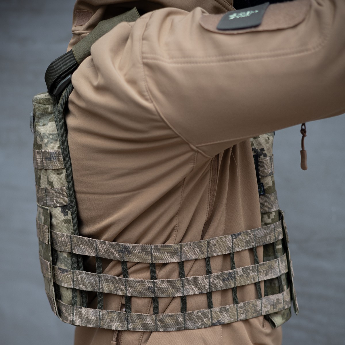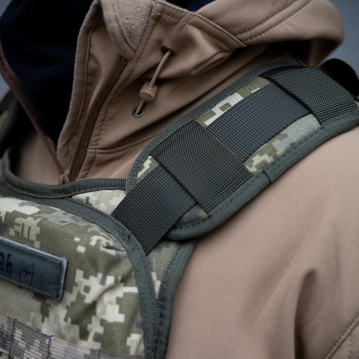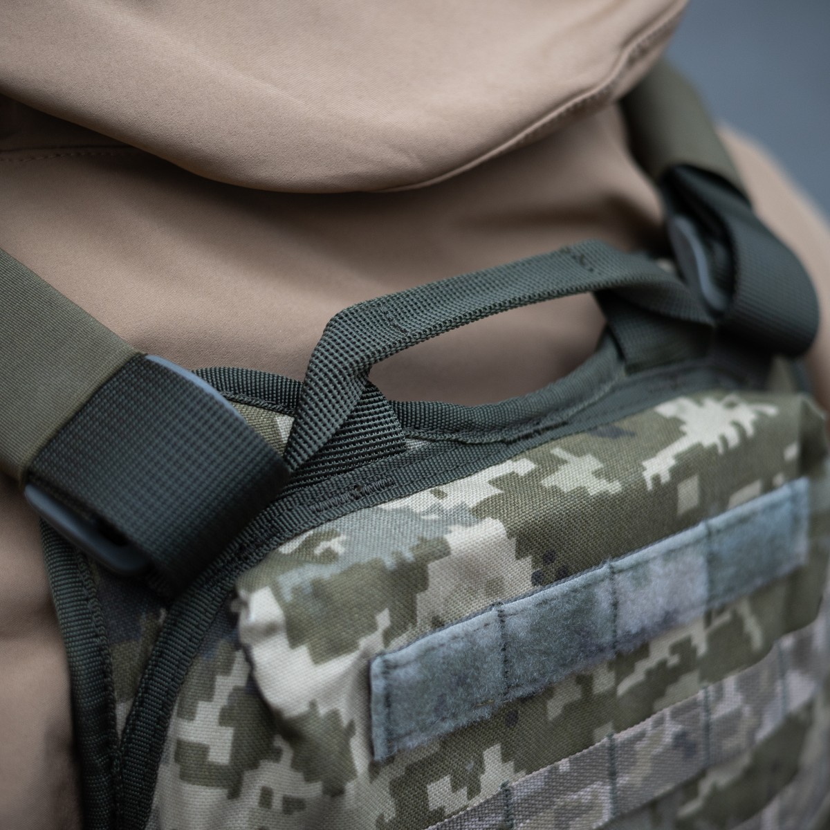 Если вы ищите действительно качественную плитоноску по оптимальной цене, то данный plate carrier "Баллистика" М2 - идеальное решение. Отличительной чертой данного Plate carrier являются: Специальная технология прострочки велкро на передней части плитоноски (клапан камербанда), что полностью защищает ее от отрыва; Слой 3D сетки который обеспечивает комфорт ношения и качественную вентиляцию, дополнительные демпфирующие подушки на внутренней части Плейт уменьшают запреградное воздействие! Расположение демпферных подушек обеспечивают дополнительную вентиляцию; Система крепления камербанда располагается снаружи под клапаном на широкой эластичной ленте. Благодаря этому плитоноска плотно прилегает к телу и не сковывает движений! Каммербанд удобно крепится за эластичную стропу, с помощью быстрого фиксатора, что имеет удобную, простую и надежную систему регулирования размера; Сам камербанд имеет скелетную форму, обеспечивающую надежную вентиляцию, и изготовлен из сдвоенной стропы, что позволяет использовать одновременно как внутреннюю баллистическую защиту так и разнообразные подсумки; Плейт рассчитан под комплектацию стандартными пластинами размером 25смХ30см со скошенными верхними углами. В базовой комплектации такие плиты поставляются во всех бронежилетах ВСУ, Нацгвардии, СБУ, НАБУ, ГРУ. Plate carrier "Баллистика" М2 изготовлена на программируемом оборудовании, позволяет достичь высокого качества изделия, точности выполнения системы MOLLE, надежности всех швов и соединений. Вы можете быть уверены, что данный плейт Керриер НЕ порвется на втором месяце эксплуатации. Плечевые лямки плитоноски оснащены дополнительными демпферными подушками 70х200мм, то есть не давят и не натирают. Подгонка осуществляется с помощью каммербанда скелетного типа, который можно зафиксировать жестко, или на эластичные ленты. Тройные ряды ячеек MOLLE на камербанде позволяют крепить подсумки с индивидуальными требованиями пользователя, так как вам удобно, а не так как удобно криворукому конструктору. Все ответственные места на плитоноске усиленные разнесенной закрепкой, что обеспечивает ту легендарную прочность о которой все говорят. Мы осуществляем отправку плитоноски Plate carrier "Баллистика" М2 по всей Украине, или вы можете купить её в наших магазинах в Киеве - ул. Героев Севастополя 5А или ул. Георгия Кирпы 2Б. Эта плитоноска сделана в цвете ММ14, украинский пиксель. Подходить по статутную форму ВСУ. *** компания оставляет за собой право изменить комплектацию без дополнительного оповещения потребителей. (Уточняйте комплектацию перед заказом)Основные характеристики Плитоноска М2 (ММ-14) Plate Carrier Балистика