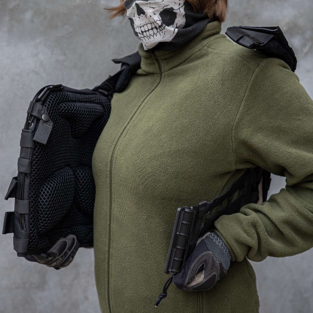 «Баллистика» учла потребности женщин-военнослужащих и выпустила плитоноску с анатомическим строением, которая обеспечивает максимальную защиту и удобство. Благодаря демпферу, адаптированному под форму женской груди, плитоноска M3 Pro Lite равномерно распределяет нагрузку на плечи и спину, что уменьшает усталость при длительном ношении. Лайт-версия отличается от M3 Pro отсутствием встроенного рюкзака под гидратор. Однако при необходимости его можно прикрепить отдельно. Преимущества плитоноски M3 Pro Lite (женская версия) К особенностям, которые выделяют это изделие, относятся: Специальная форма демпфера на передней части, которая учитывает анатомию женского тела. Универсальность размера, которая обеспечивается регулируемыми лямками и камербандами. Удобство в использовании. Мягкая и упругая внутренняя поверхность плитоноски способствует комфорту пользовательницы, предотвращает натирание, скольжение, прение. Компоненты женской плитоноски Основными составляющими продукта являются: Передняя и задняя панели для плит. Плитоноска рассчитана под комплектацию стандартными пластинами размером 25×30 см со скошенными верхними углами. В базовой комплектации такие плиты поставляются во всех бронежилетах ВСУ, Нацгвардии, СБУ, НАБУ, ГУР. Также в изделии от «Баллистики» можно использовать плиты SAPI M, ESAPI M. Скелетные камербанды. Закреплены на эластичной стропе, которая не рвется даже в растянутом состоянии, позволяют навесить дополнительное снаряжение и бронеплиты. 15-миллиметровый демпфер. Состоит из 3D-сетки толщиной 5 мм и подушек из EVA-пены толщиной 10 мм. Способствует циркуляции воздуха, терморегуляции, а также эффективно снижает запреградное воздействие. Плечевые лямки. Также оснащены 3D-сеткой и толстым демпфером, что помогает распределять нагрузку. Вставки из гиполона препятствуют скольжению приклада оружия во время стрельбы. А регулировка лямок происходит благодаря липучке велкро, которая вставляется в специальный клапан. Система MOLLE. Ячейки MOLLE на основных поверхностях позволяют навесить подсумки для различного содержимого. Система экстренного сброса, запатентованная «Баллистикой». Чтобы разложить изделие на части, достаточно легкого, короткого движения. При этом ручки привода размещены на уровне груди, сбоку от пластины, и прячутся на внутреннюю сторону плитоноски, где их легко нащупать. Они выполнены в форме хлястиков и дополнительно фиксируются кнопкой, что делает невозможным случайное зацепление. Пряжки вместо велкро. Бесшумные пластиковые пряжки на камербандах позволяют быстро и без лишних звуков снять плитоноску на левую или правую сторону. Технические характеристики Вес чехла: 1100 г. Материал: нейлон (Cordura 1000D), 3D-сетка, гиполон (хайпалон). Стропа: полиамид нейлон. Липучка: Velcro® Alfatex. Фурнитура: АММ. Особенности: с быстрым сбросом; без плит. Размер: регулируемый (по охвату груди 60-120 см). Под бронеплиты: M 25×30 см. Цвета: оригинальный и неоригинальный мультикам, олива, койот, черный, украинский пиксель (ММ-14).Основные характеристики Плитоноска M3 Pro Lite (женская версия) (Чёрный) с системой быстрого сброса