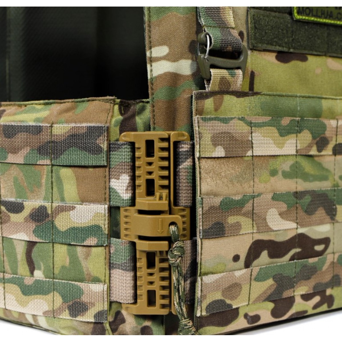 Удобная и комфортная плитоноска Multicam (мультикам) имеет систему двойного быстрого сброса. Быстрым движением можно легко избавиться от снаряжения, что сверхважно в тяжелых условиях боя или в других ситуациях. Сделать это можно только одной рукой. Но это не единственное преимущество и особенность плитоноски от украинского производителя компании MOLLI UA.