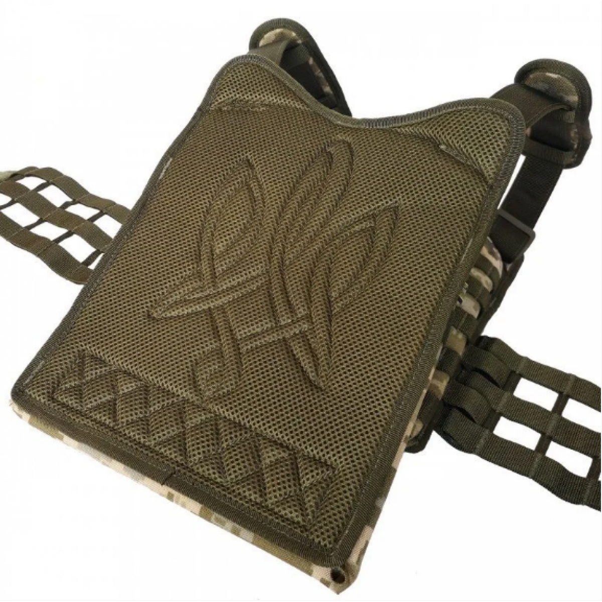 - Слой 3D сетки который обеспечивает комфорт ношения и качественную вентиляцию. Сама стенка оснащена вышитым гербом Украины на всю площадь поверхности