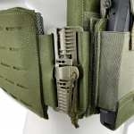 Плитоноска обладает интерфейсом MOLLE Laser Cut для крепления дополнительного снаряжения, такого как итоги, аптечки или модульные вставки. Это дает вам гибкость и возможность персонализировать плитоноску в соответствии с вашими потребностями.