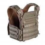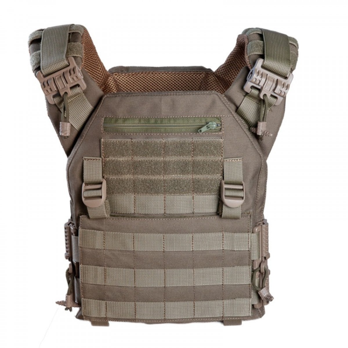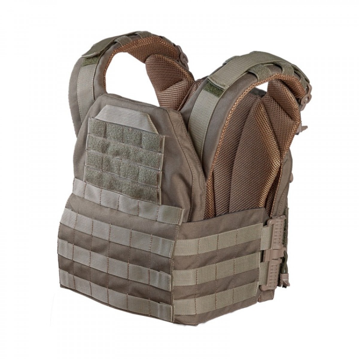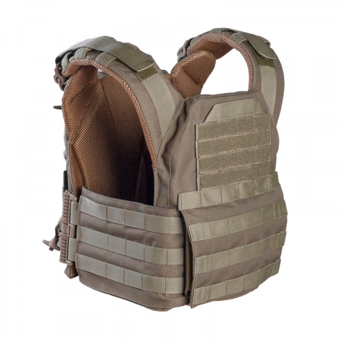 Тактический жилет – плитоноска может нести баллистические пластины стандартного размера 250Х300, которые качественно крепятся двойной фиксацией. Весь жилет оклеен лентами в камуфляжной системе MOLLE, что допускает любую конфигурацию (подсумки под АК, гранаты, скиды и т.д.). На плечиках есть «подъемники», позволяющие позиционировать и фиксировать баллистические пластины по высоте. Боковины надежно держатся на липучках и имеют возможность вставки бокового баллистического пакета. Благодаря простой конструкции, основанной на шести элементах - передней панели, задней панели, 2-х поясах, 2-х комфортных плечиках и используемой быстросъемной фурнитуре, у пользователя есть возможность быстрого сброса жилета за 1 сек. Внутренняя часть жилета выполнена дистанционной сеткой, что увеличивает комфорт при ношении.