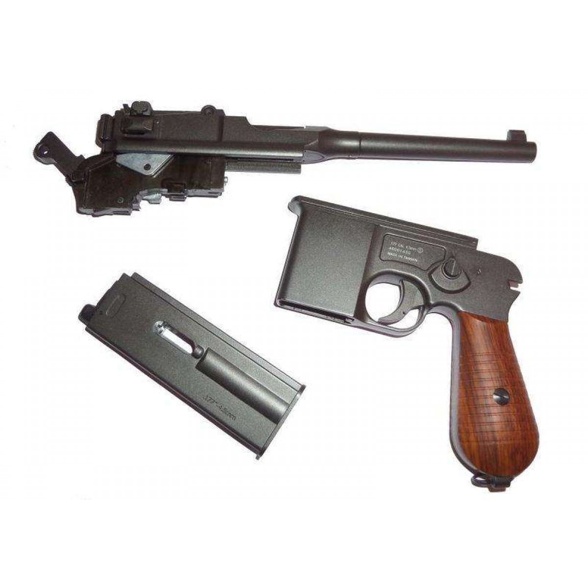 Представленная здесь модель являет собой точную модель пистолета М712 Маузера С96 с коробчатым магазином и переводчиком режимов огня. Пистолет оснащен системой Blowback, имитирующей ход затвора при выстреле.