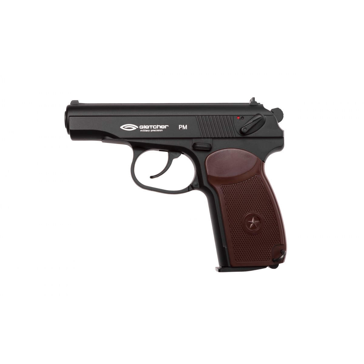 Пистолет Gletcher PM является бюджетным вариантом пневматического пистолета, затвор у него не двигается. Эта модель монолитная, точнее, она состоит из 2-х закреплённых винтами половин. Конструкция ударно-спускового механизма означенной модели не даёт стрелять с предварительного взвода. Этот пистолет работает лишь в режиме самовзвода - для каждого последующего выстрела нужно только нажать на спусковой крючок. Благодаря этому у пистолета хорошая скорострельность.