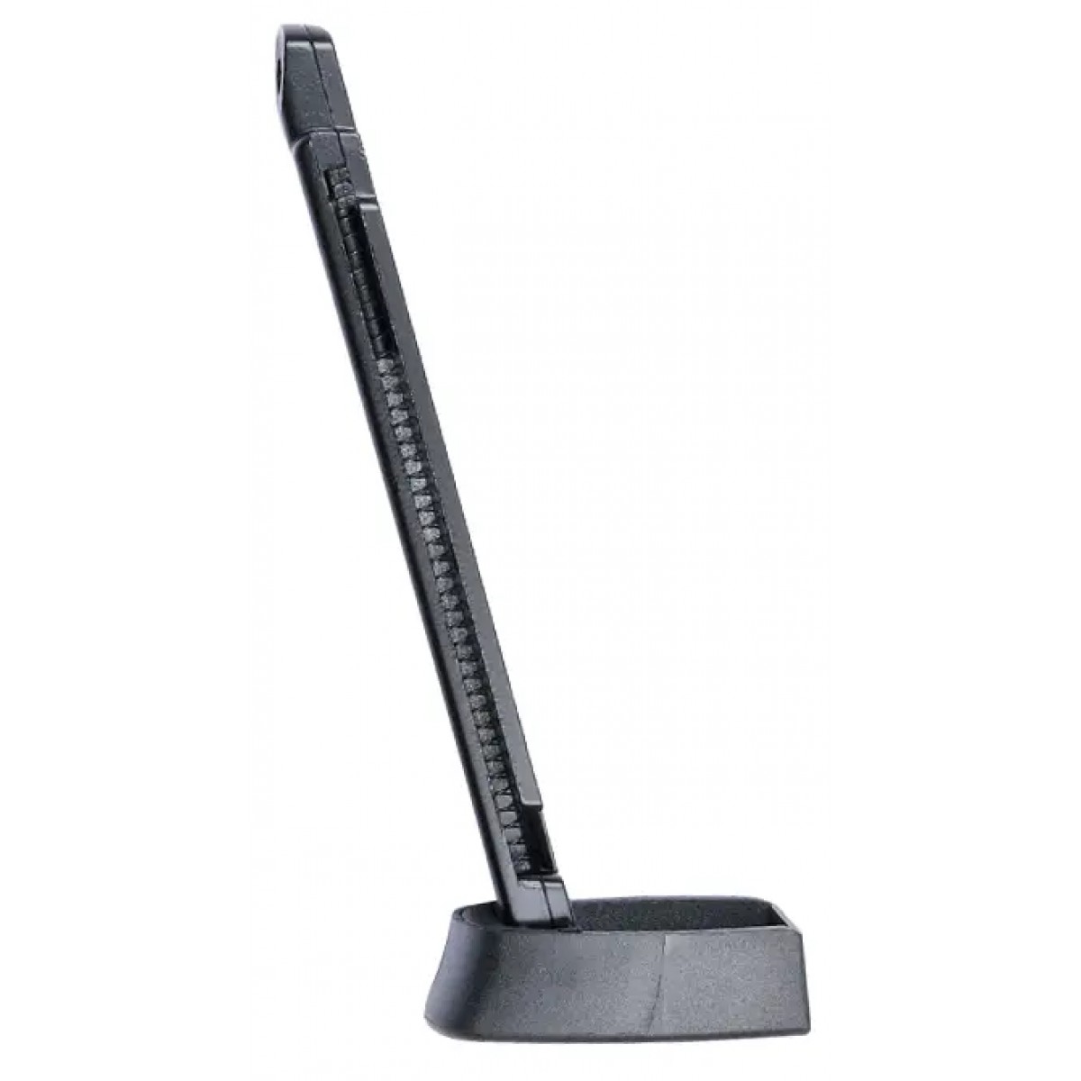 ASG сохранила не только эти детали, но и возможность передергивания кожуха-затвора и функцию затворной задержки. Магазин извлекается посредством кнопочного механизма. Баллон СО2 устанавливается отдельно от магазина в специальную камеру в задней части рукоятки.