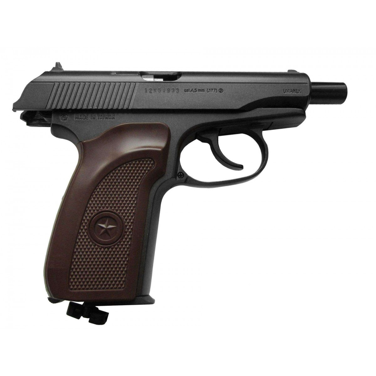 У газобаллонного пистолета Umarex Makarov Ultra Blow Back от Umarex, основные детали корпуса и затворная рама выполнены из металлических сплавов. Рукоятка снабжена пластиковой накладкой, что делает пневматический пистолет схожим по внешнему виду с боевым прототипом. Стрельбу производит как самовзводом, так и с предварительным взводом курка. Оснащён всеми функциональными элементами управления и подвижной затворной рамой. Магазин рассчитан на 18 сферических пуль ВВ. Ствол стальной гладкий. Прицел и мушка не регулируемые. Баллон СО2 расходуется экономно, с одного баллона можно совершить до сотни полноценных выстрелов. Пистолет интересен наличием системы имитации отдачи затворной рамы — Blowback, благодаря которой, создается впечатление что Вы стреляете из настоящего боевого ПМ.