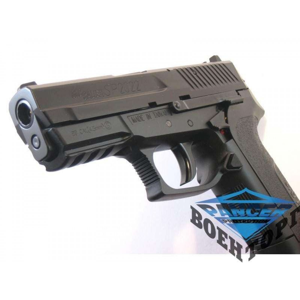 Пневматический пистолет KWC-KM47HN Sig Sauer 2022 — отличное бюджетное решение на рынке пистолетной пневматики. KWC KM47HN является точной копией огнестрельного аналога KWC Sig Sauer SP 2022. Предназначен для спортивно-развлекательной стрельбы. KWC Sig Sauer 2022 изготовлен из высококачественного пластика. Ствол стальной, гладкий. Источником энергии выстрела является стандартный 12-граммовый баллончик СО2, размещаемый в рукоятке KWC Sig Sauer 2022. Магазин данного пистолета очень вместительный — до 23 омедненных стальных шариков ВВ калибра 4,5 мм. Предохранитель неавтомтический. KWC Sig Sauer 2022 имеет нерегулируемые прицельные приспособления. Характеристики: - Начальная скорость пули 130 м/с - Калибр 4.5 мм - Источник энергии Баллон CO2 - Тип боеприпасов Шарики - Общая длина 190 мм - Емкость магазина (барабана) 23 пули - Имитация отдачи (blowback) Нет - Тип прицела Прицельная планка и мушка - Материал Пластик - Вес 0.6 кг