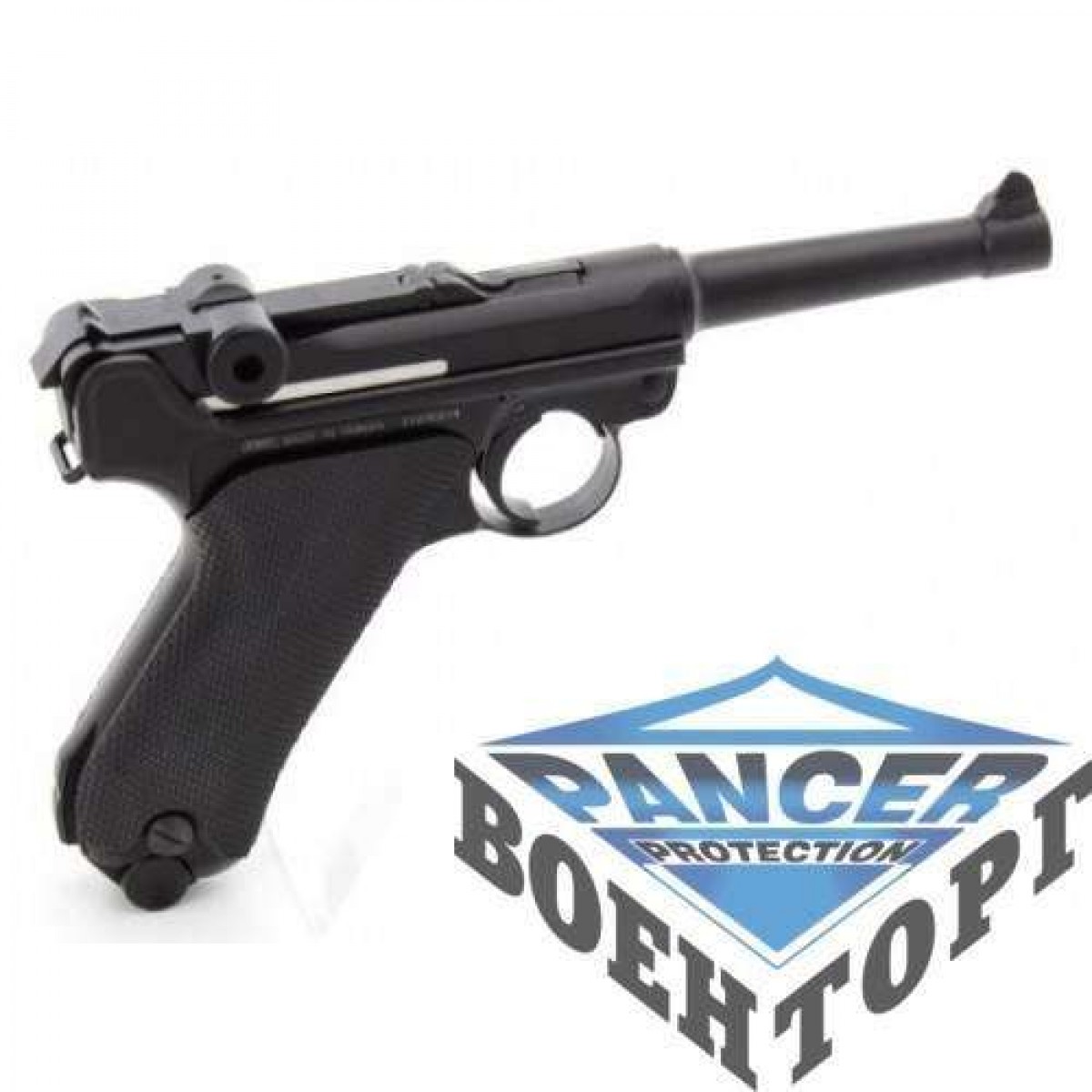 KWC P-08 Luger KMB41D — это пневматическая версия легендарного пистолета Люгера P.08 (известного также как Парабеллум). Пистолет выполнен полностью из металла. В магазин помещается 21 пуля, а начальная скорость составляет 100 метров в секунду. Модель оснащена системой Blowback. Характеристики: - Начальная скорость пули 100 м/с - Калибр 4.5 мм - Источник энергии Баллон CO2 - Тип боеприпасов Шарики - Общая длина 220 мм - Емкость магазина (барабана) 21 пуля - Имитация отдачи (blowback) Есть - Тип прицела Прицельная планка и мушка - Материал Металл - Вес 0.834 кг
